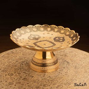 شیرین خوری برنجی جزو ظروف پذیرایی ضروری مهمان هست. این ظروف تزیین شده با هنر میناکاری هستند . شیرینی خوری پایه دار باعث آسان شدن سرو مهمان میشود. و جلوه خاصی به ظرف میبخشد. جنس این ظروف آلیاژ برنج هست. به دلیل جلوه و زیبایی هنر دست ، گزینه مناسبی برای جهیزیه عروس و دکور منزلتان هم هستند.