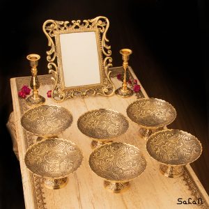 ست هفت سین برای عید و نوروز و چیدن سفره هفت سین سنت دیرینه ایرانی میباشد. وسایل ست هفتسین برنجی شامل شش عدد کاسه ، دو عدد شمعدان و یک آیینه میباشد. سفره های عید نوروز با تنوع بالا برای خریدی آسان و متناسب با تمام سلیقه ها در نظر گرفته شده . انواع ست های هفت سین لوکس به همراه قیمت را میتوانید در سایت ما مشاهده کنید.