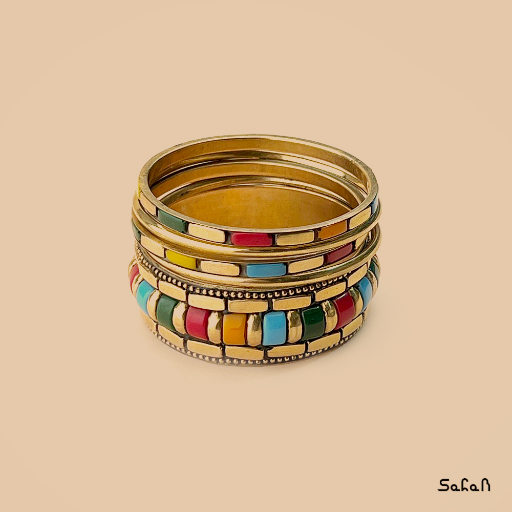 النگو برنجی و پلاستیک آجری ست 5 عددی