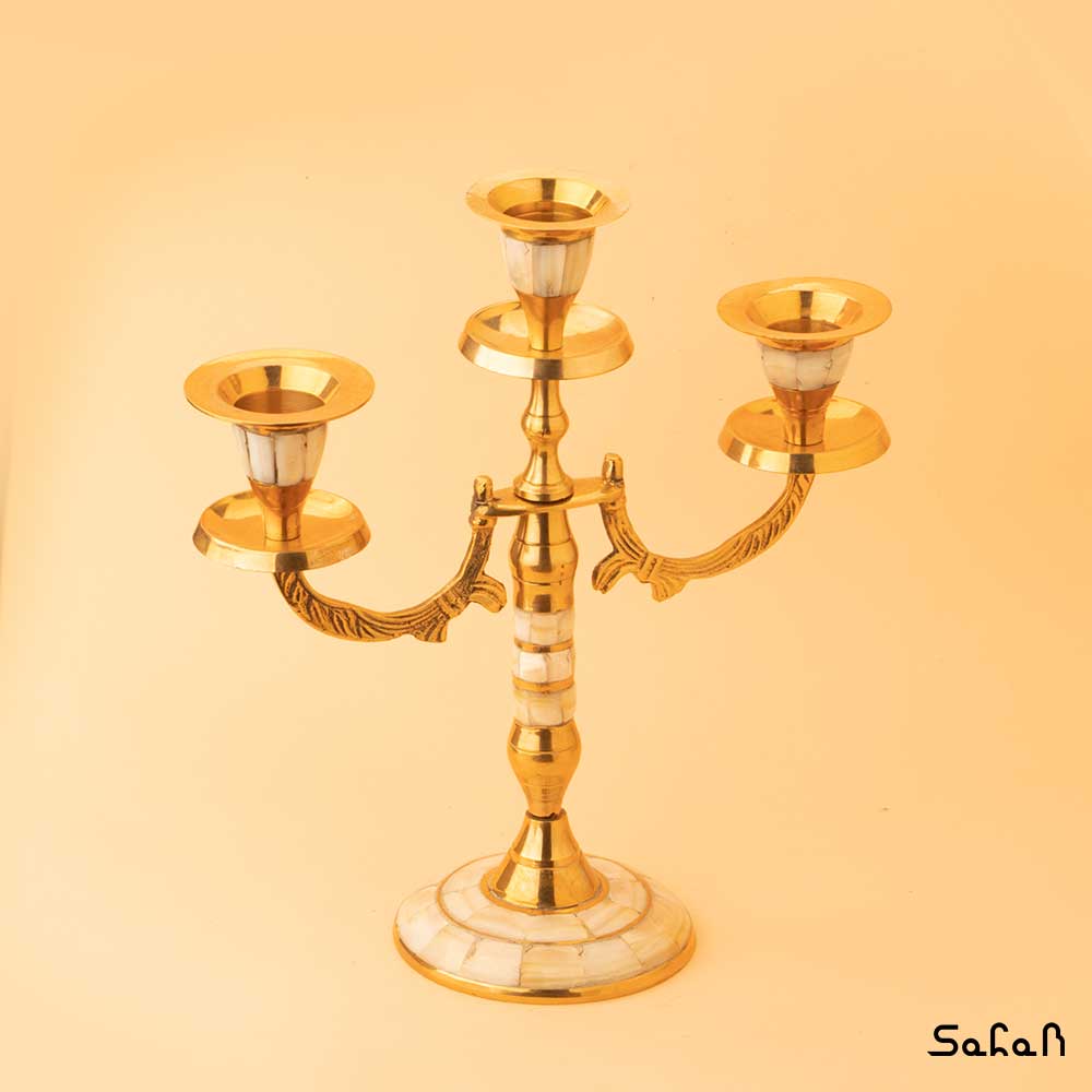 جفت شمعدان برنج و صدف سه شعله