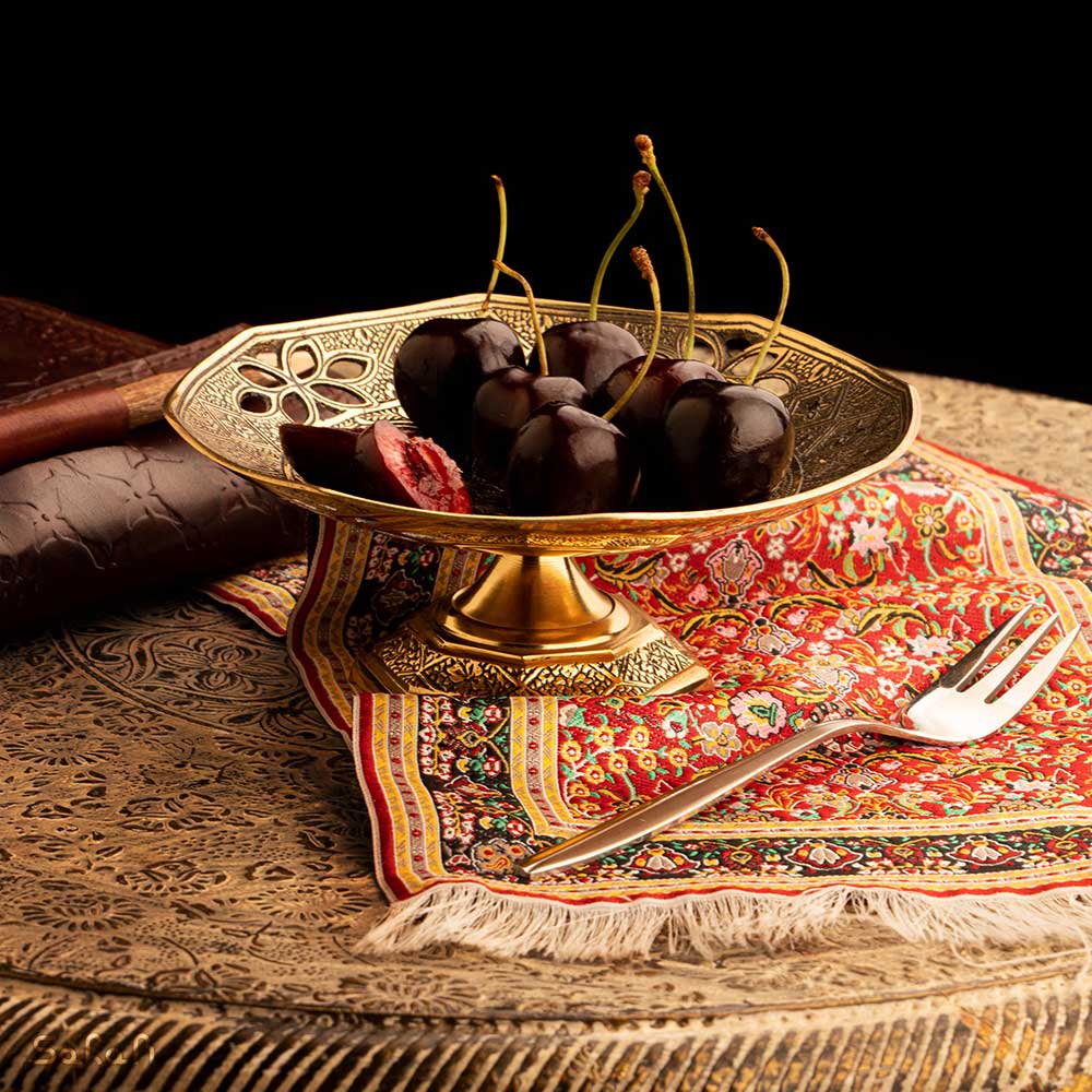 خانه فروشگاه ظروف برنجی هندی شیرینی خوری شیرینی خوری کوچک برنجی طلایی پایه دار مدل آلسترومریا