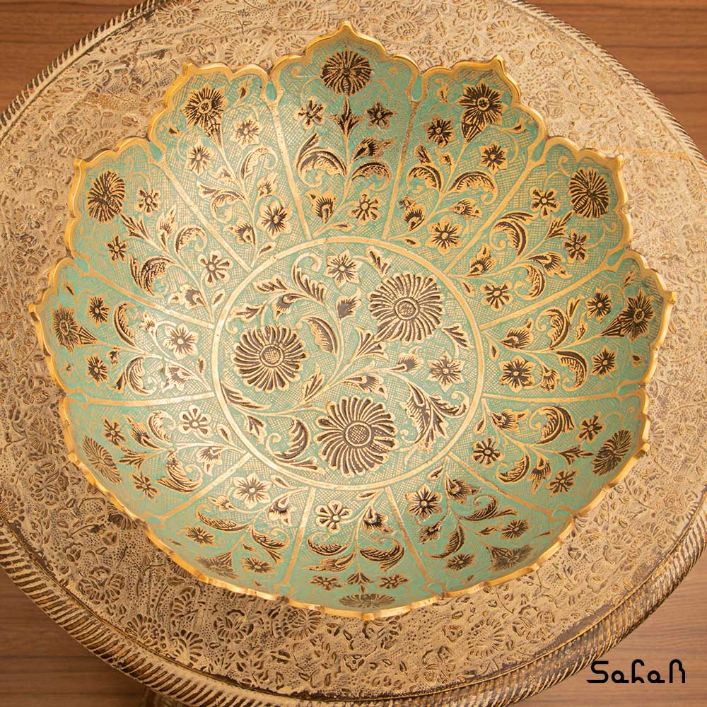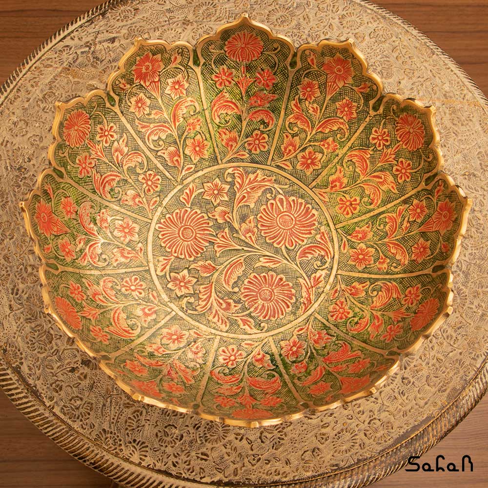 خانه فروشگاه ظروف برنجی هندی میوه خوری برنجی هندی میوه خوری برنجی میناکاری هندی طرح شجر