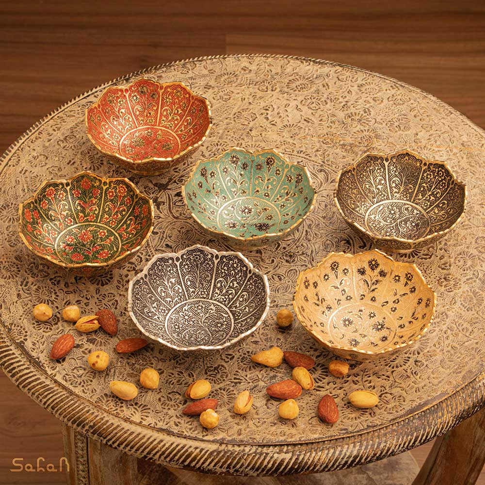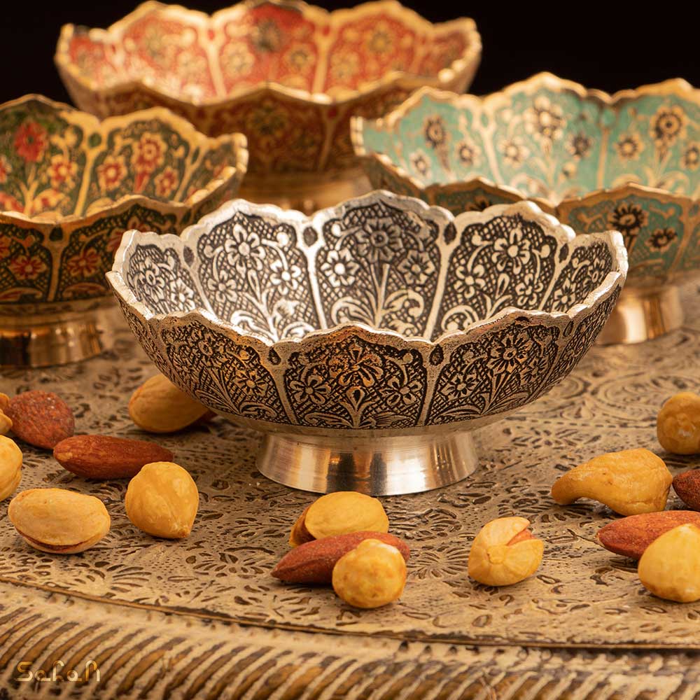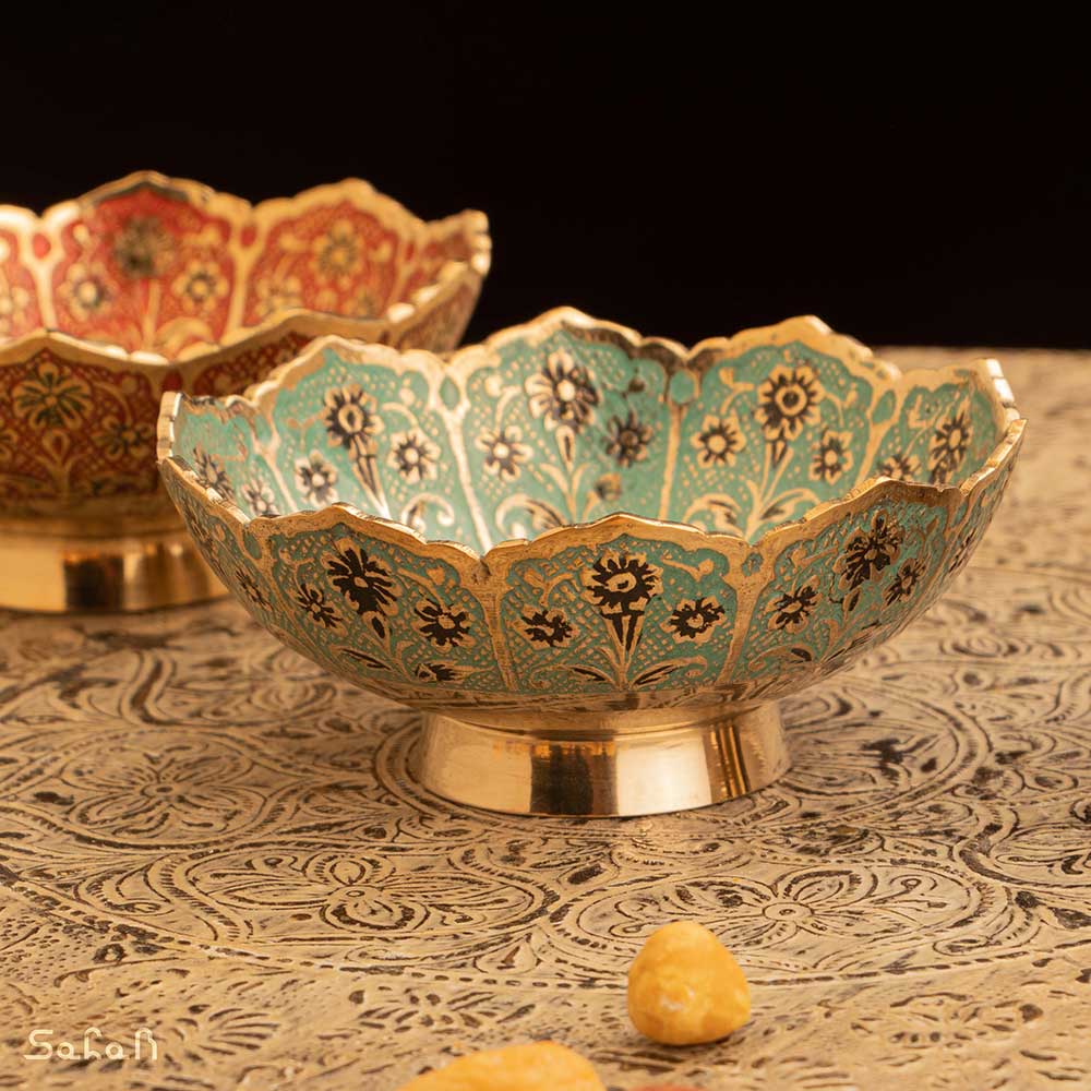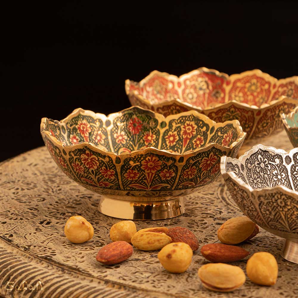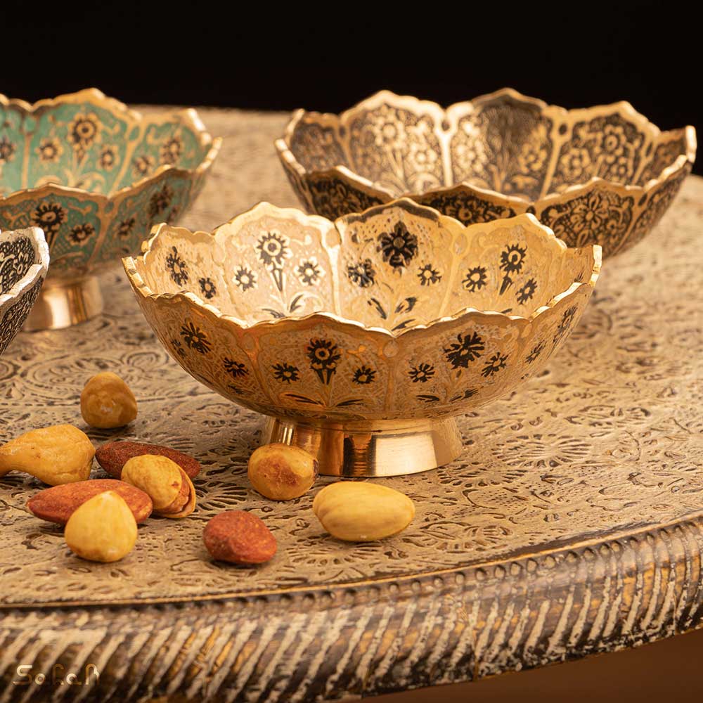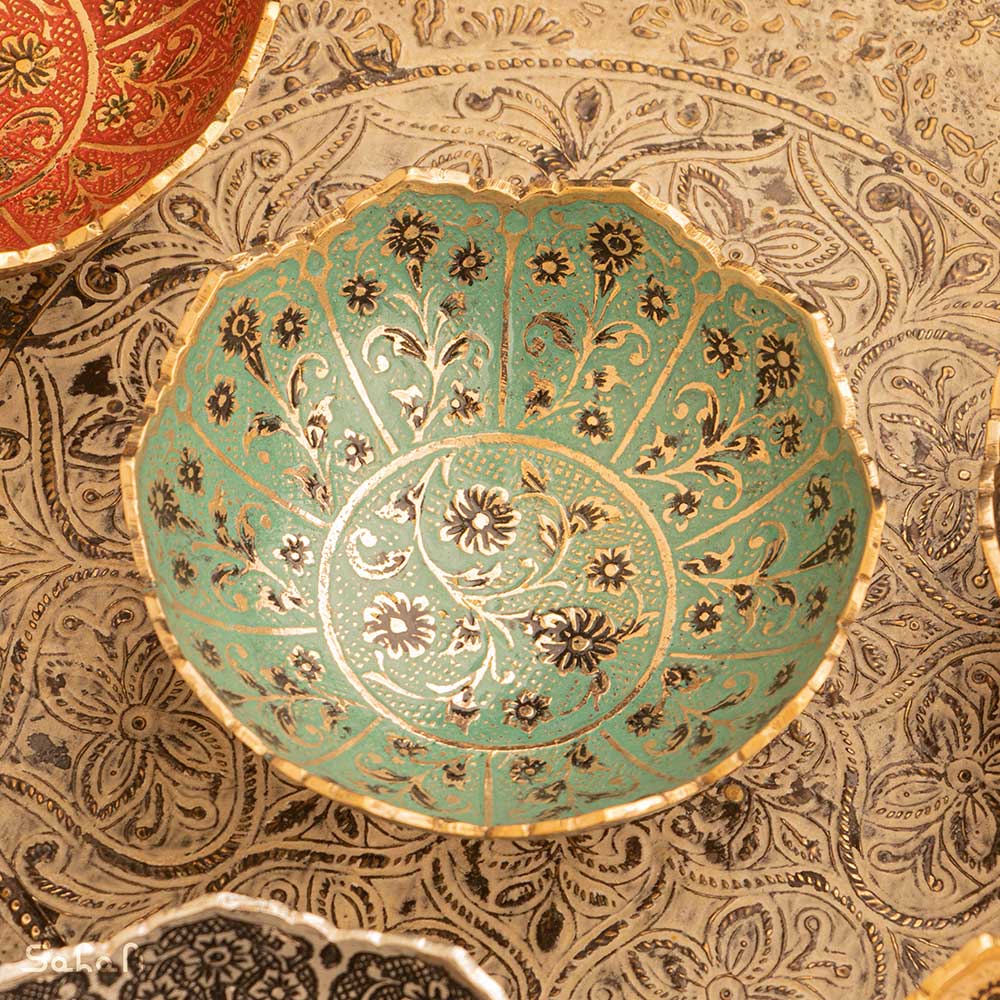 خانه فروشگاه ظروف برنجی هندی کاسه کاسه برنجی میناکاری طرح شجر