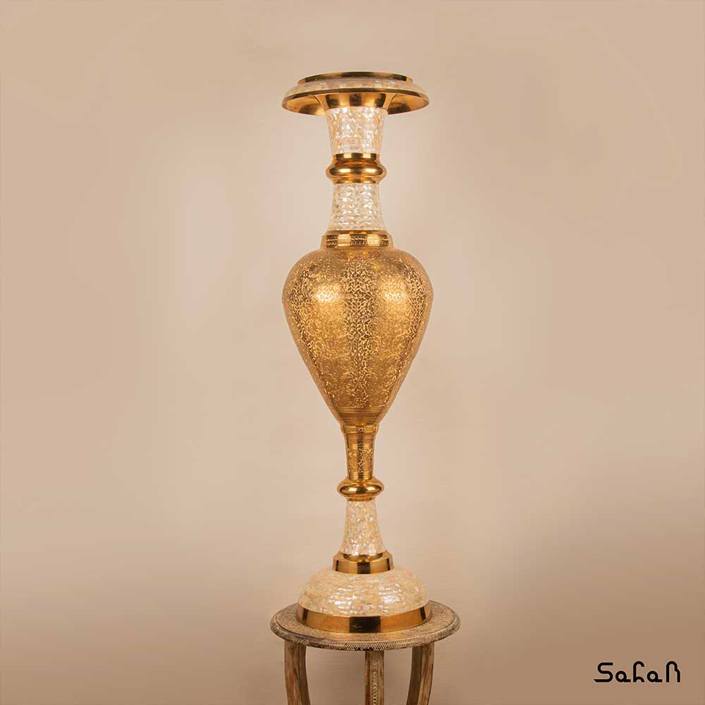گلدان برنج و صدف قلم زنی 125 سانت