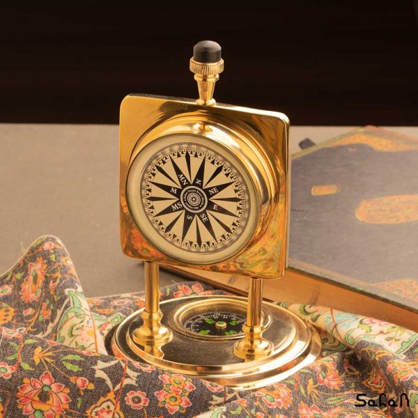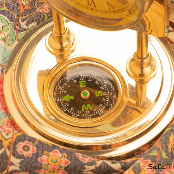 خانه فروشگاه دکوراسیون هندی ساعت عقربه ای ساعت برنجی رو میزی قطب نما دار