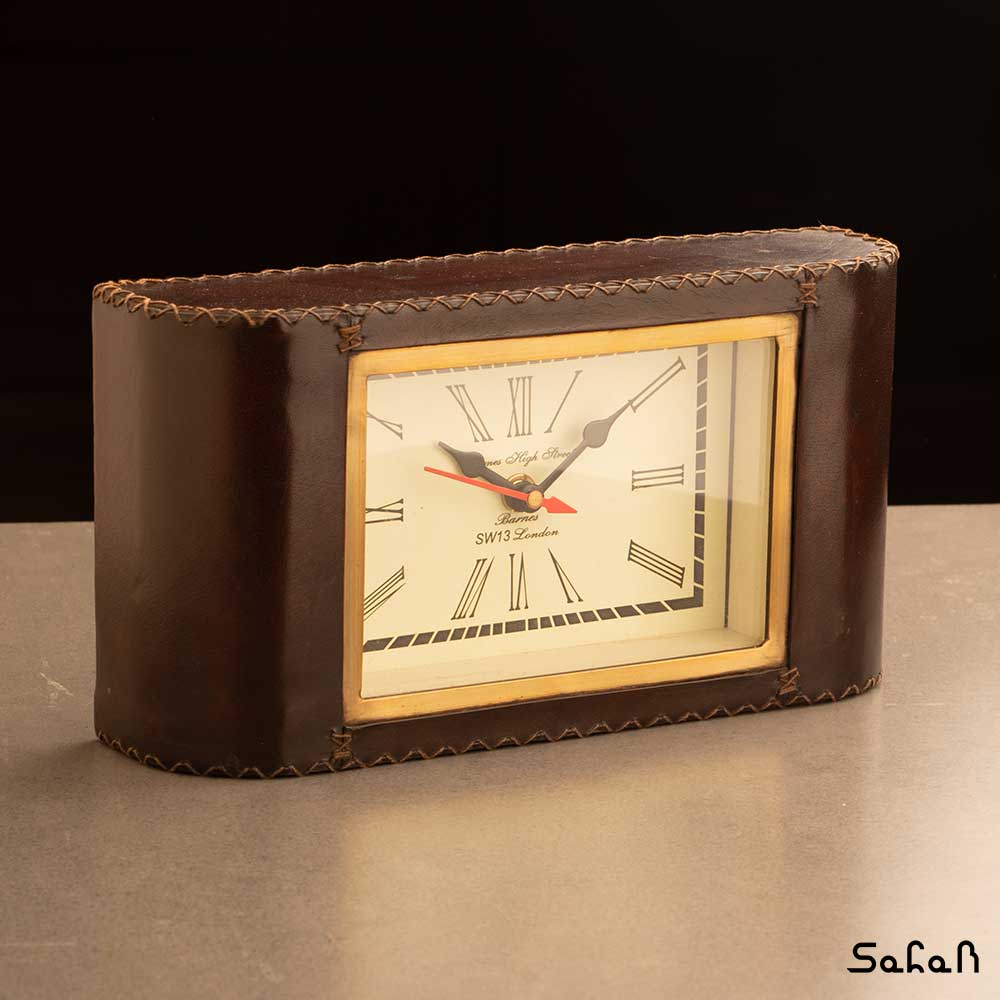 خانه فروشگاه دکوراسیون هندی ساعت عقربه ای ساعت چوبی رو میزی روکش چرم