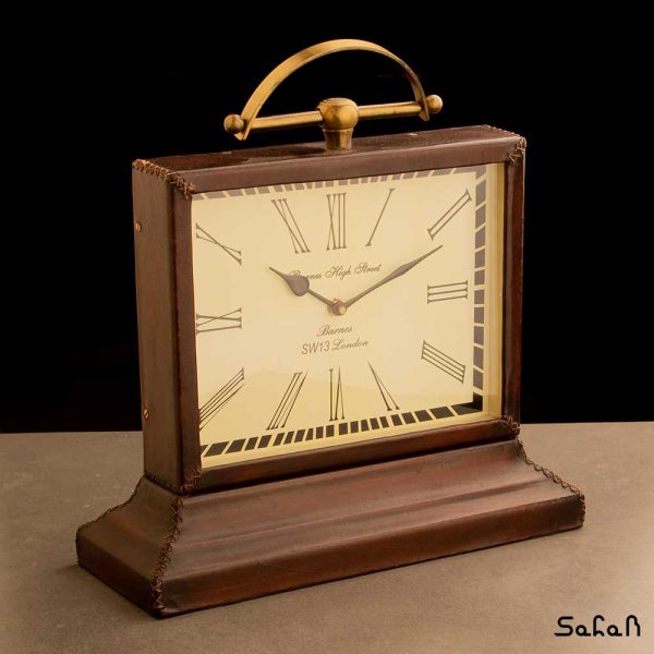 ساعت چوبی رو میزی دسته فلزی