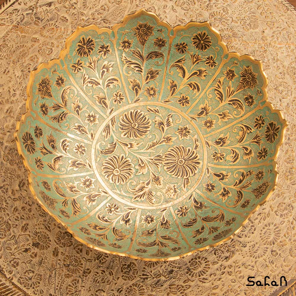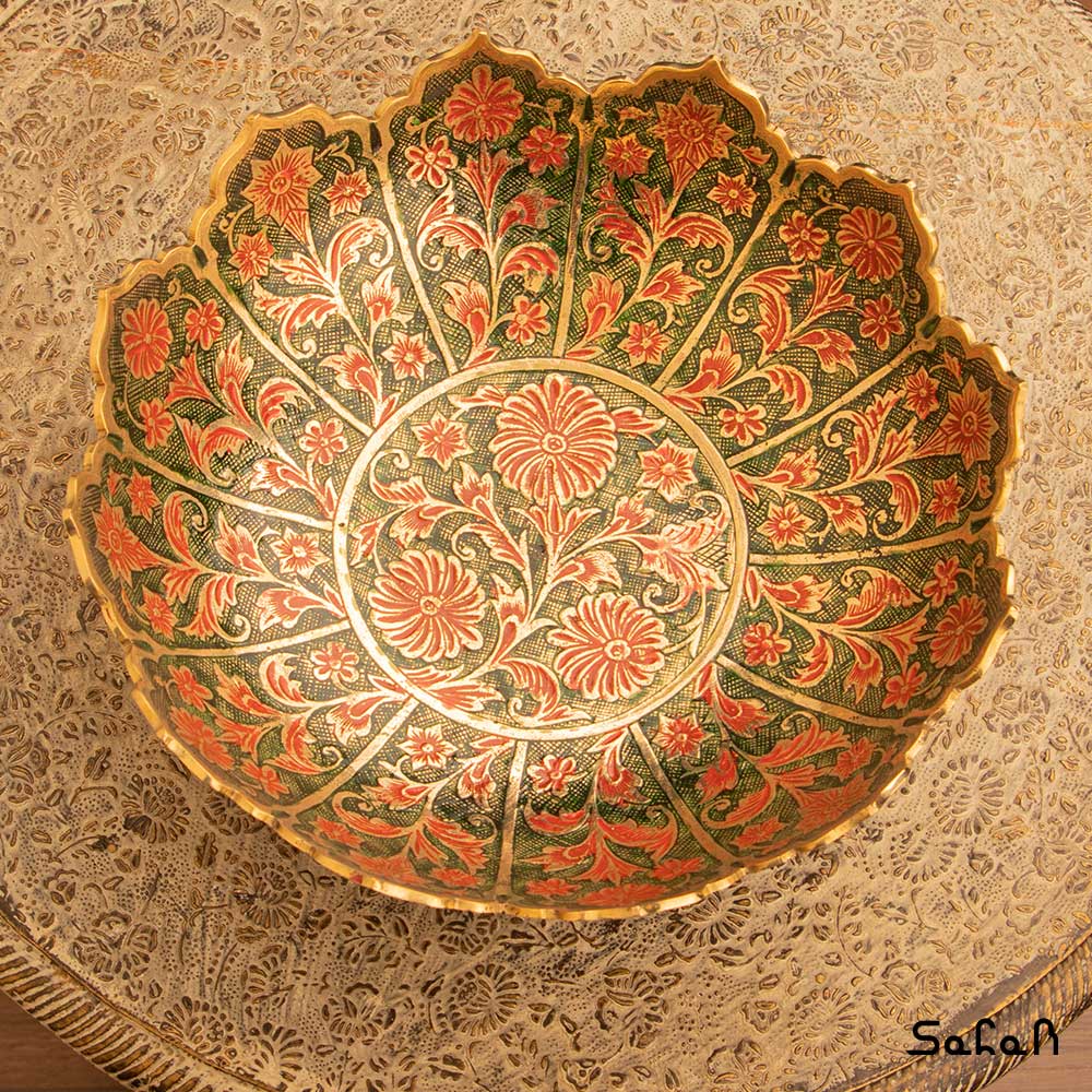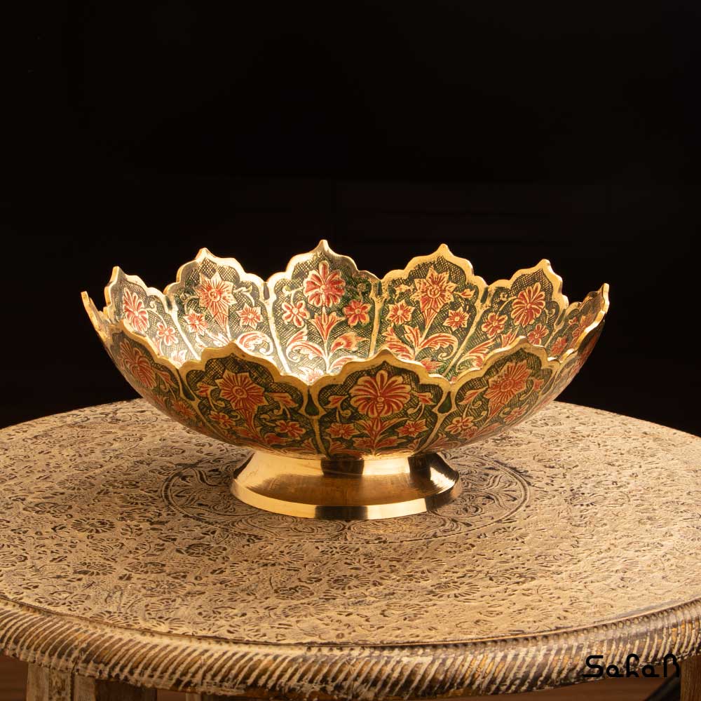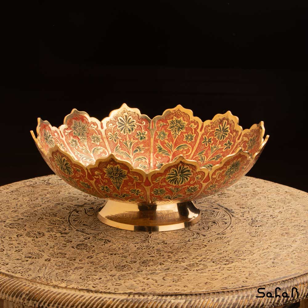 خانه فروشگاه ظروف برنجی هندی آجیل خوری آجیل خوری برنجی میناکاری پایه دار دورو طرح شجر
