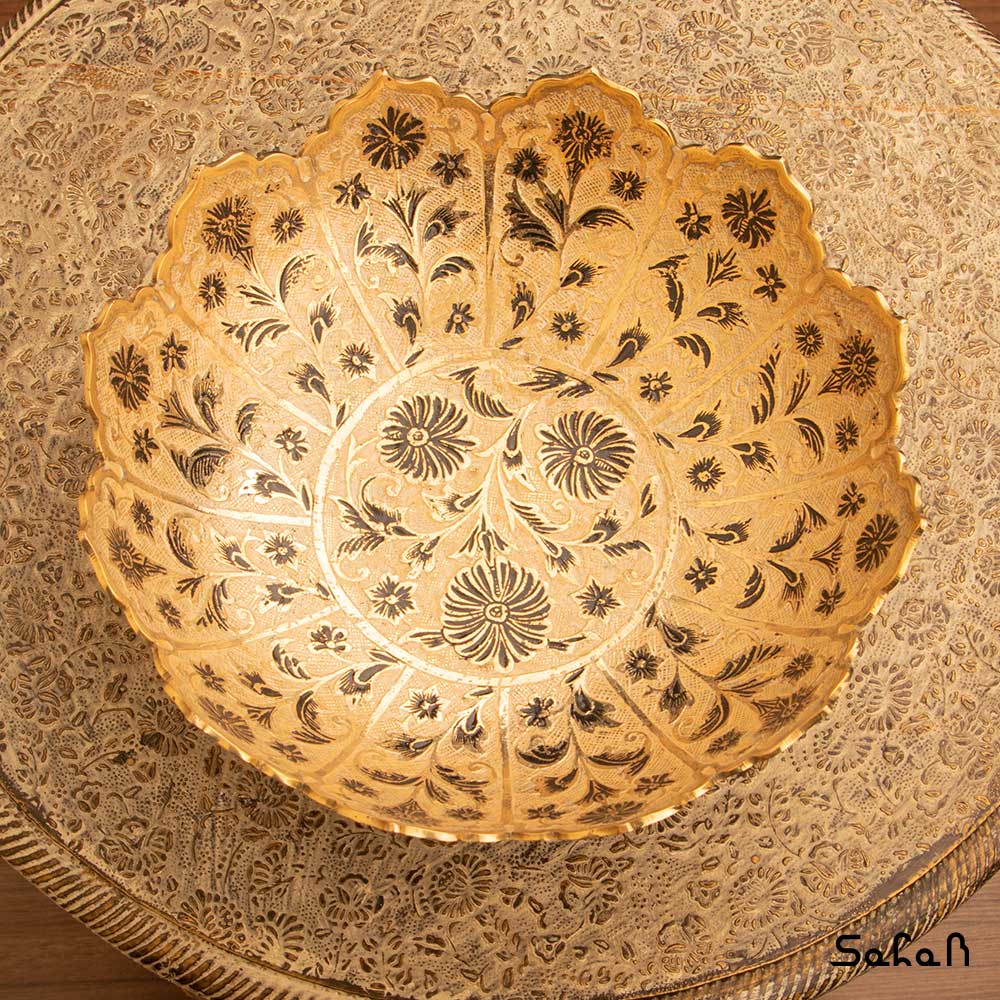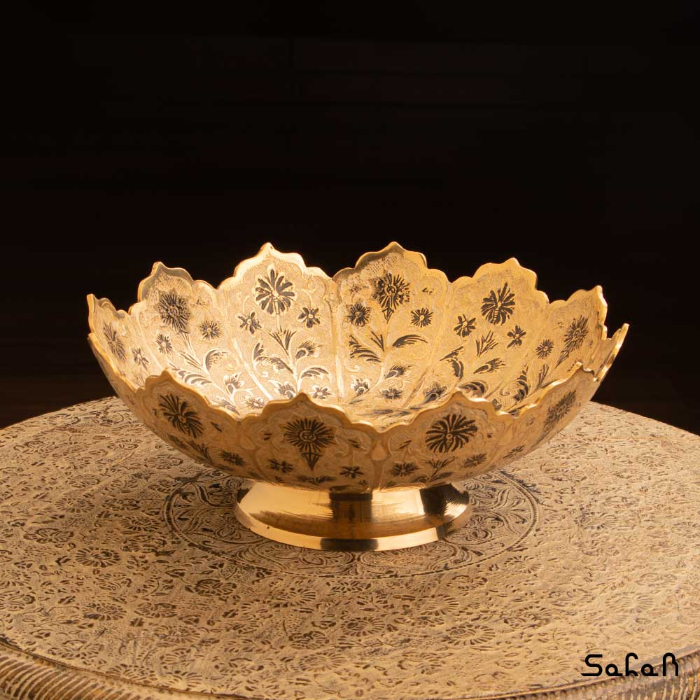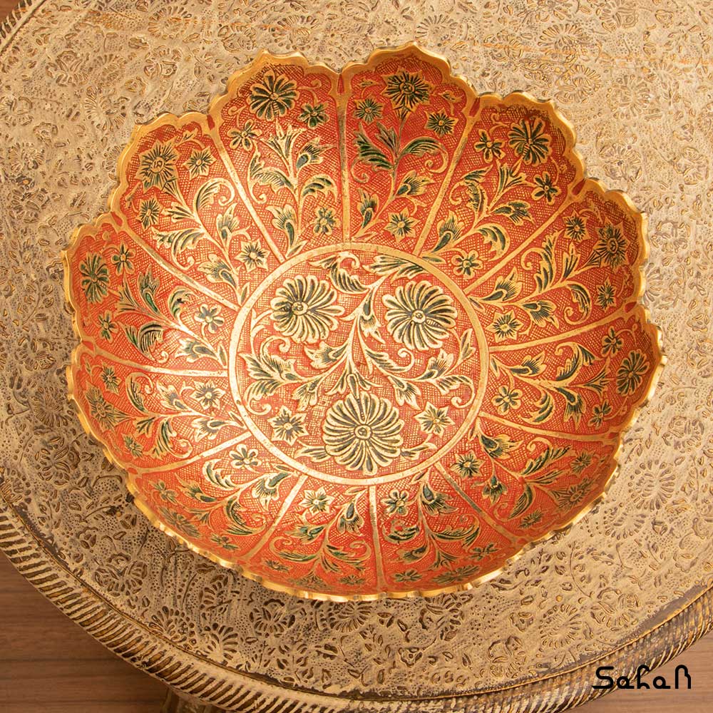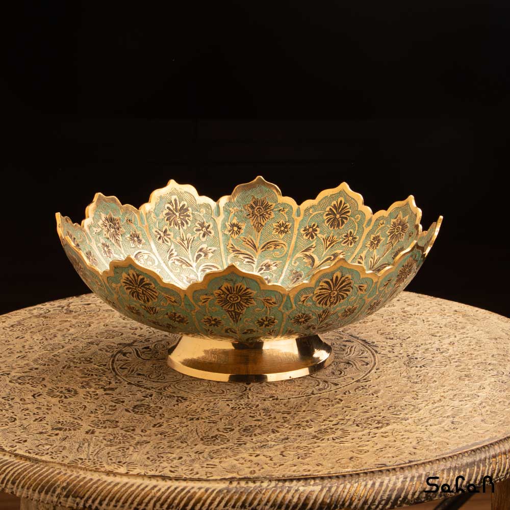 خانه فروشگاه ظروف برنجی هندی آجیل خوری آجیل خوری برنجی میناکاری پایه دار دورو طرح شجر