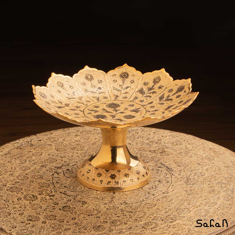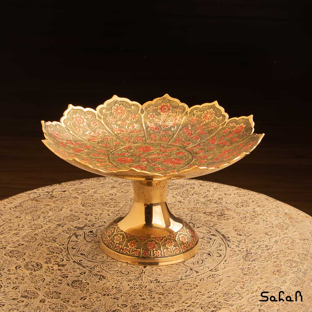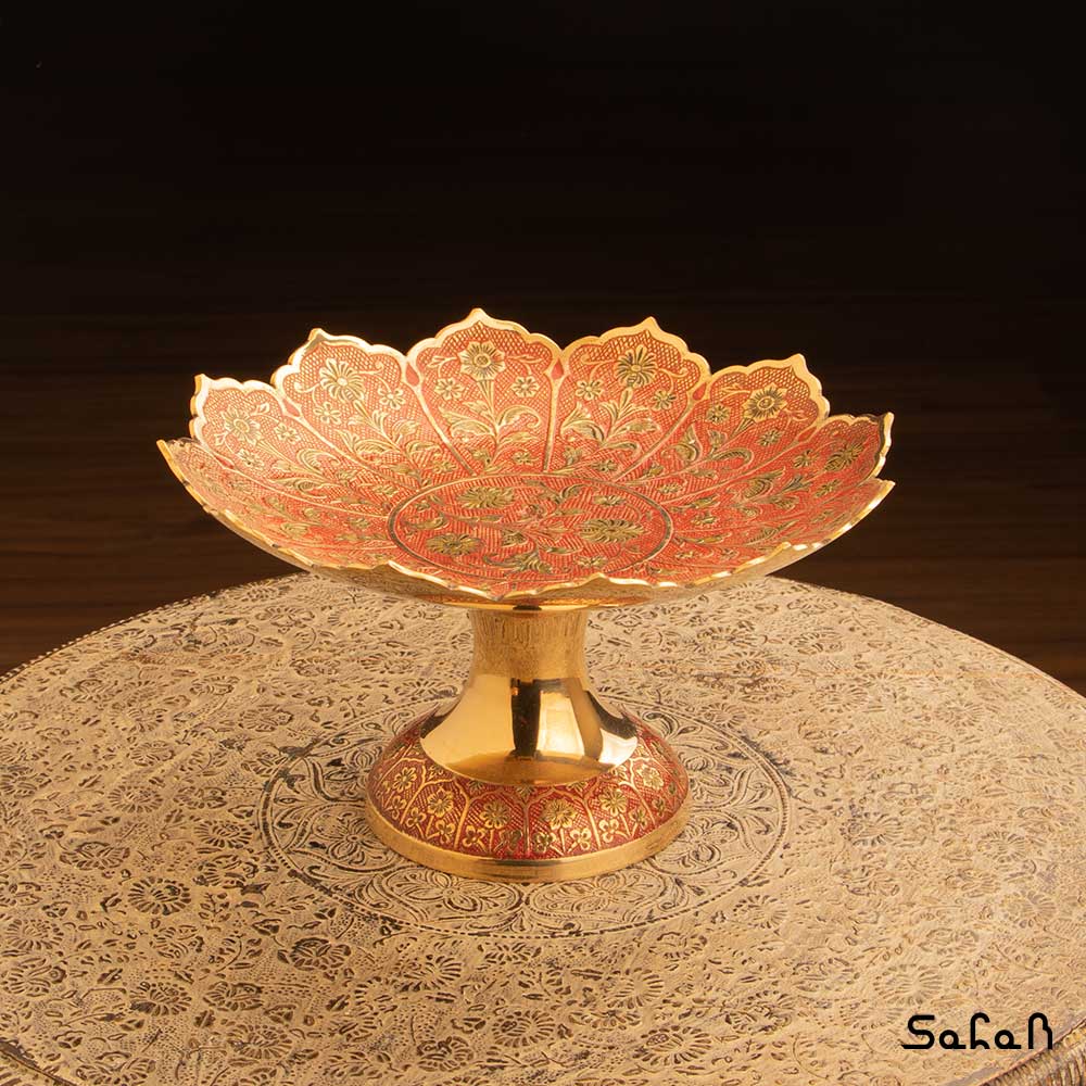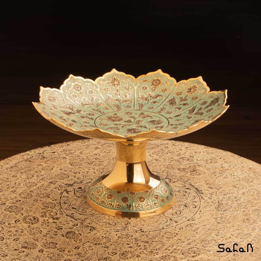 خانه فروشگاه ظروف برنجی هندی شیرینی خوری شیرینی خوری برنجی میناکاری پایه دار دورو طرح شجر