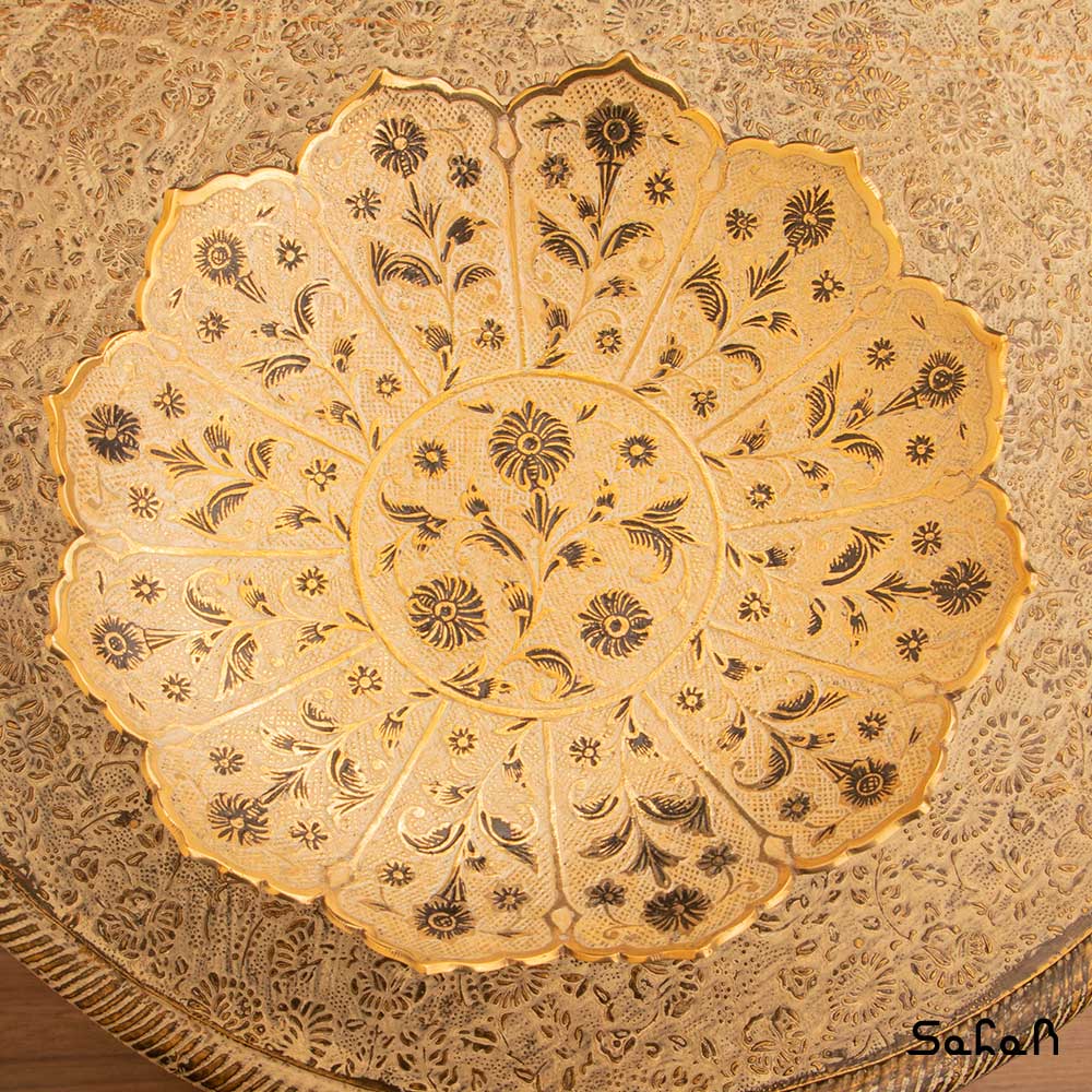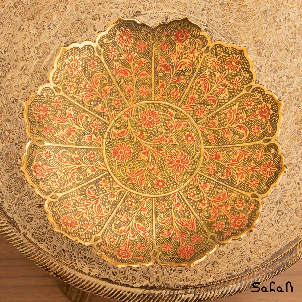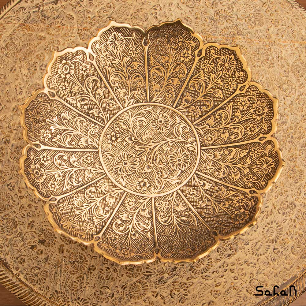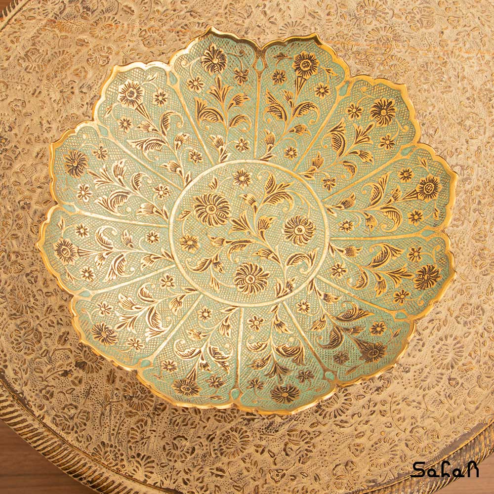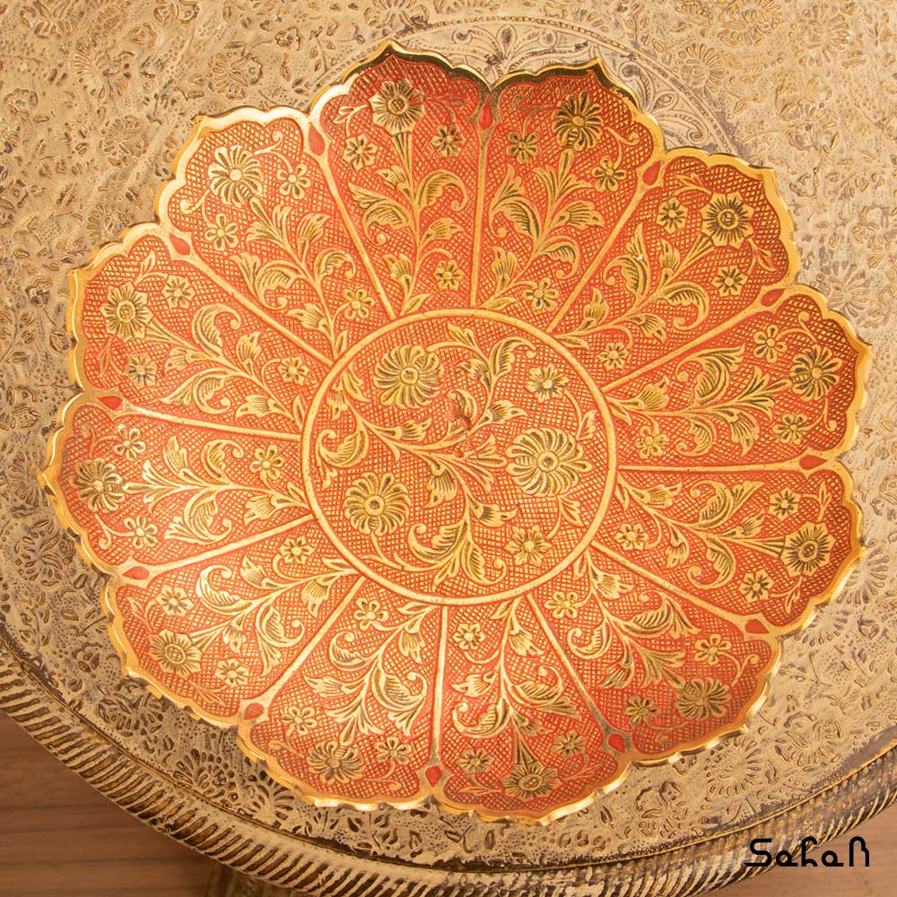 خانه فروشگاه ظروف برنجی هندی شیرینی خوری شیرینی خوری برنجی میناکاری پایه دار دورو طرح شجر