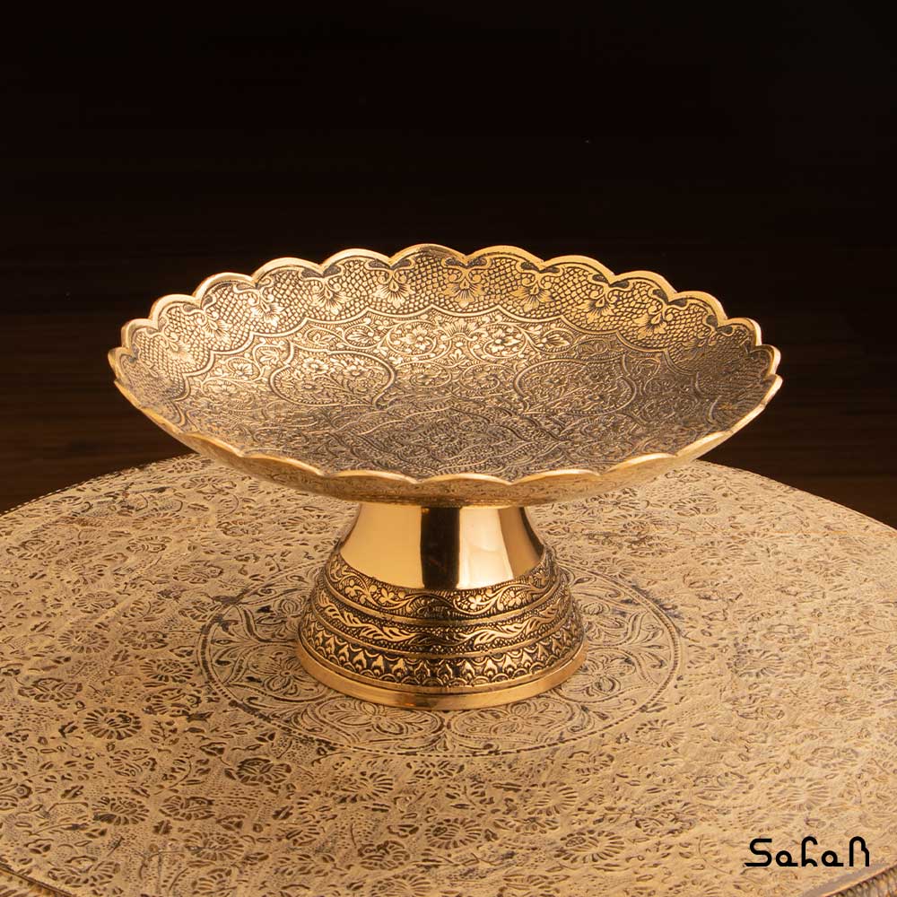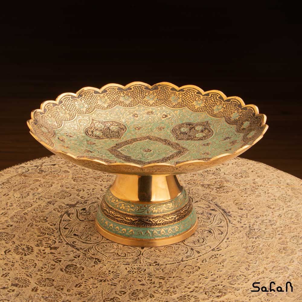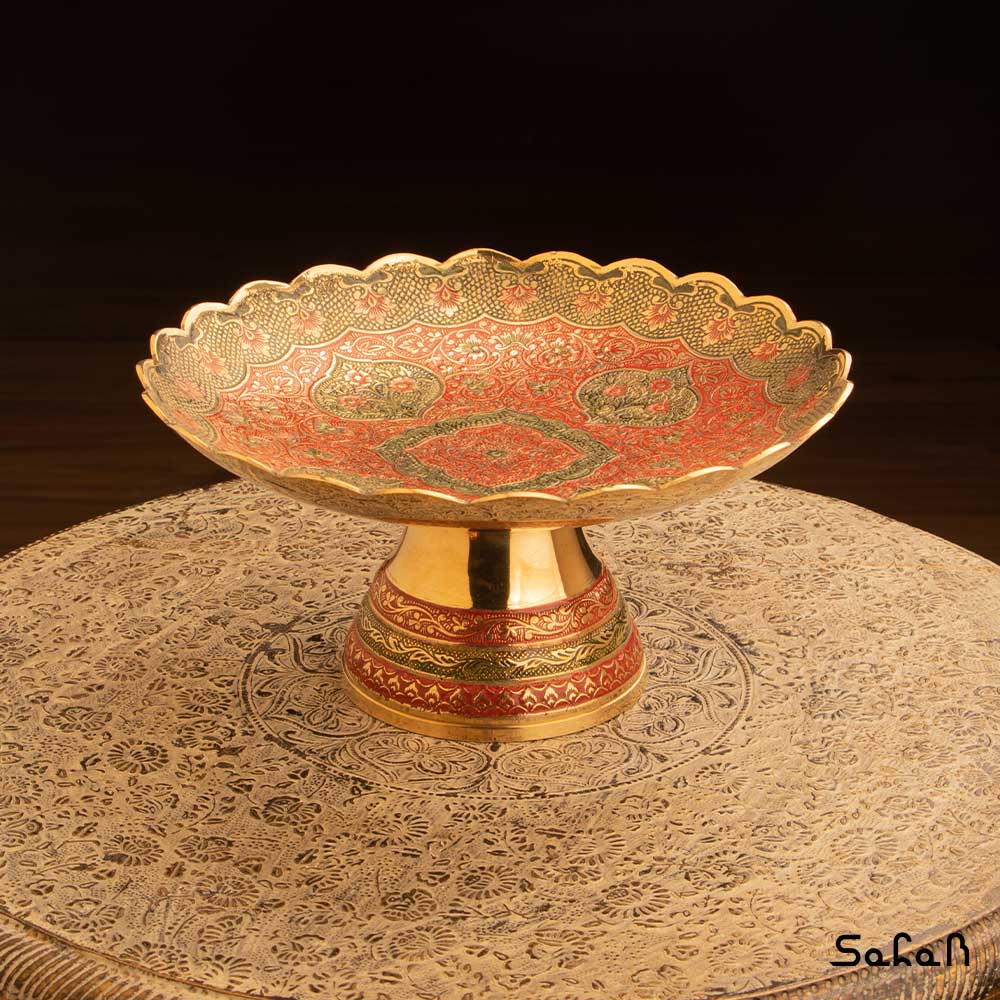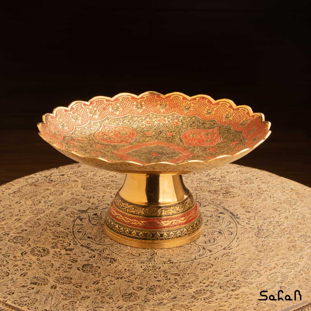 خانه فروشگاه ظروف برنجی هندی شیرینی خوری شیرینی خوری برنجی میناکاری پایه دار دورو طرح دیکشا