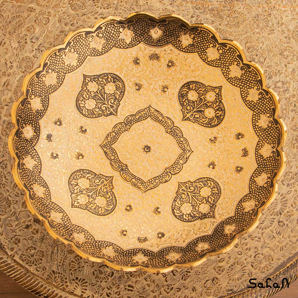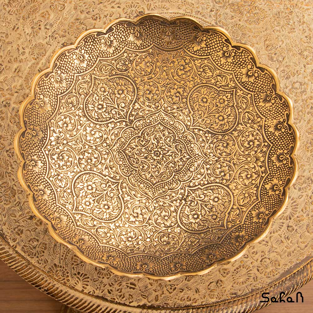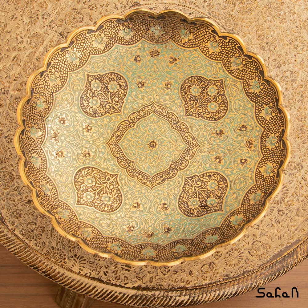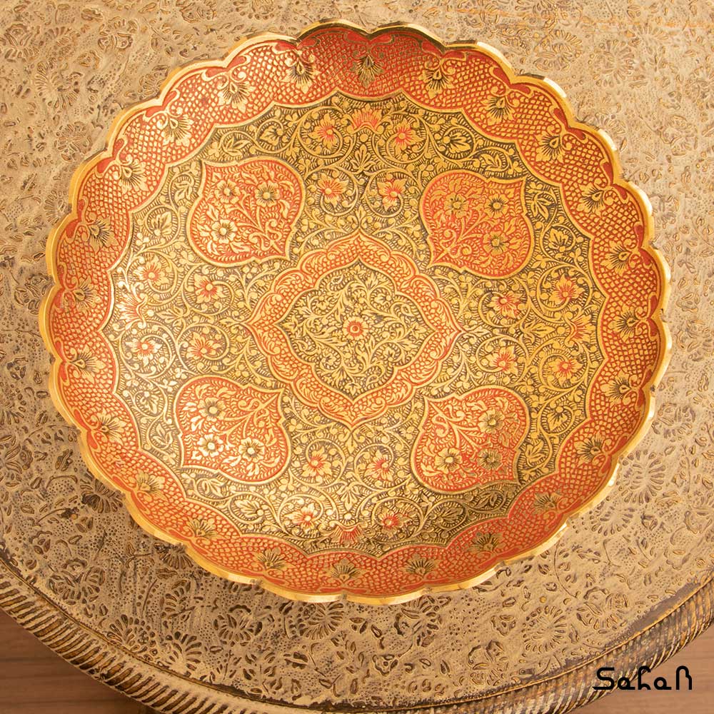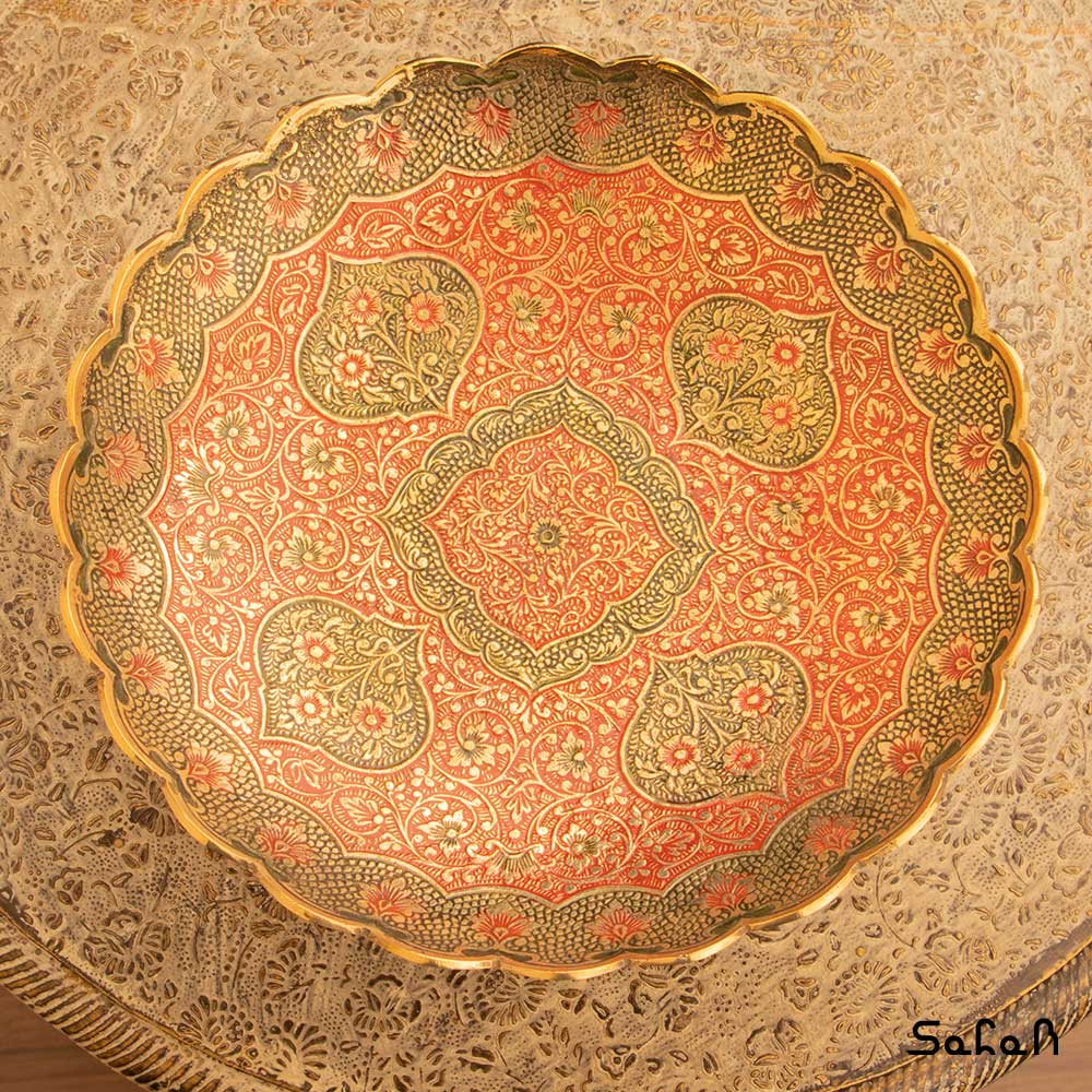 خانه فروشگاه ظروف برنجی هندی شیرینی خوری شیرینی خوری برنجی میناکاری پایه دار دورو طرح دیکشا