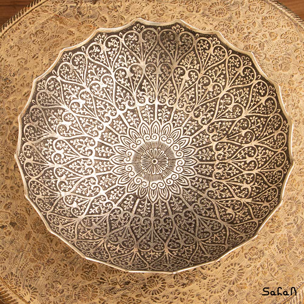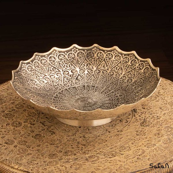 خانه فروشگاه ظروف برنجی هندی میوه خوری برنجی هندی میوه خوری نقره ای طرح قلب