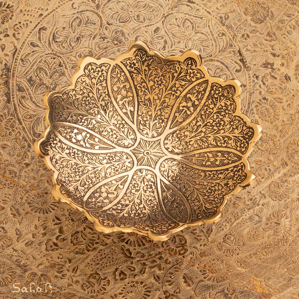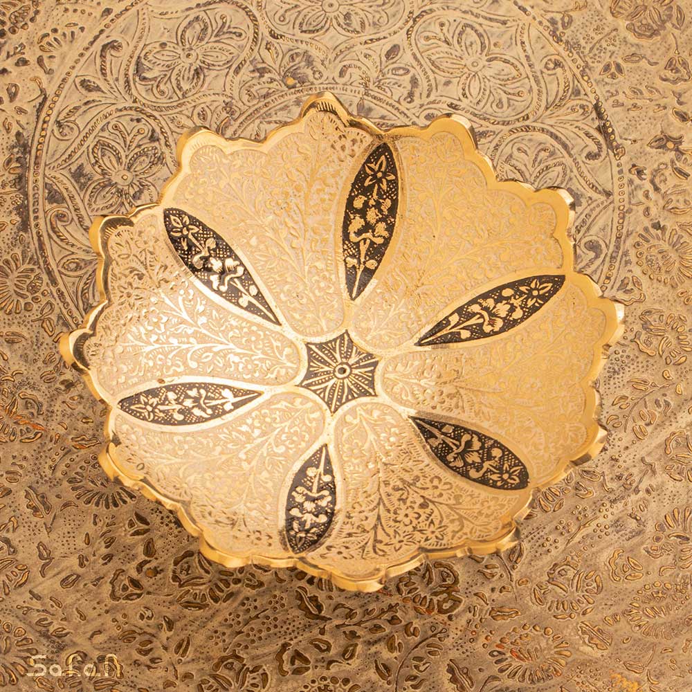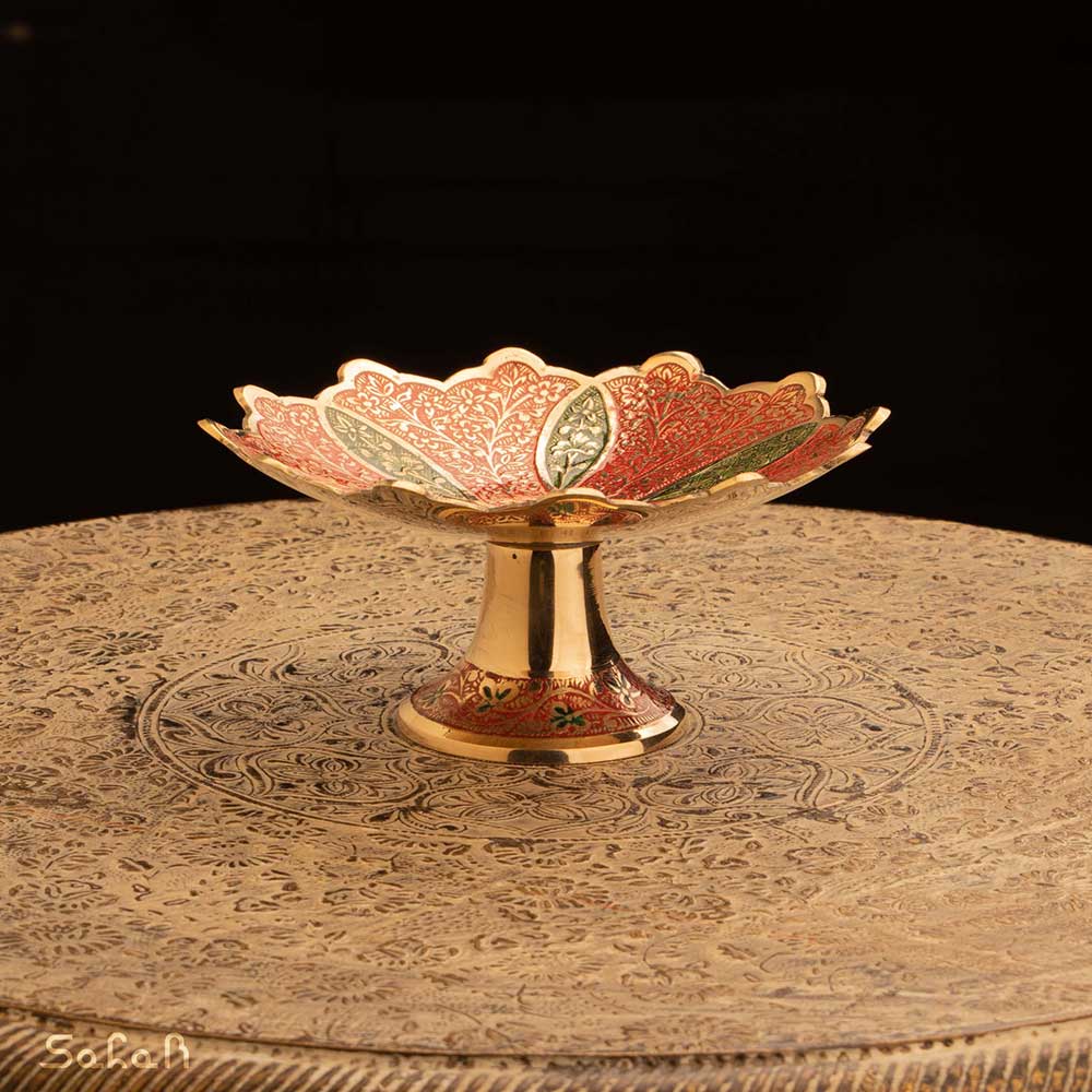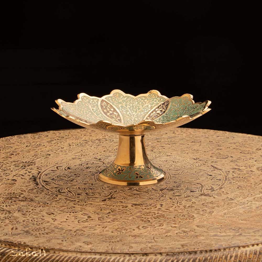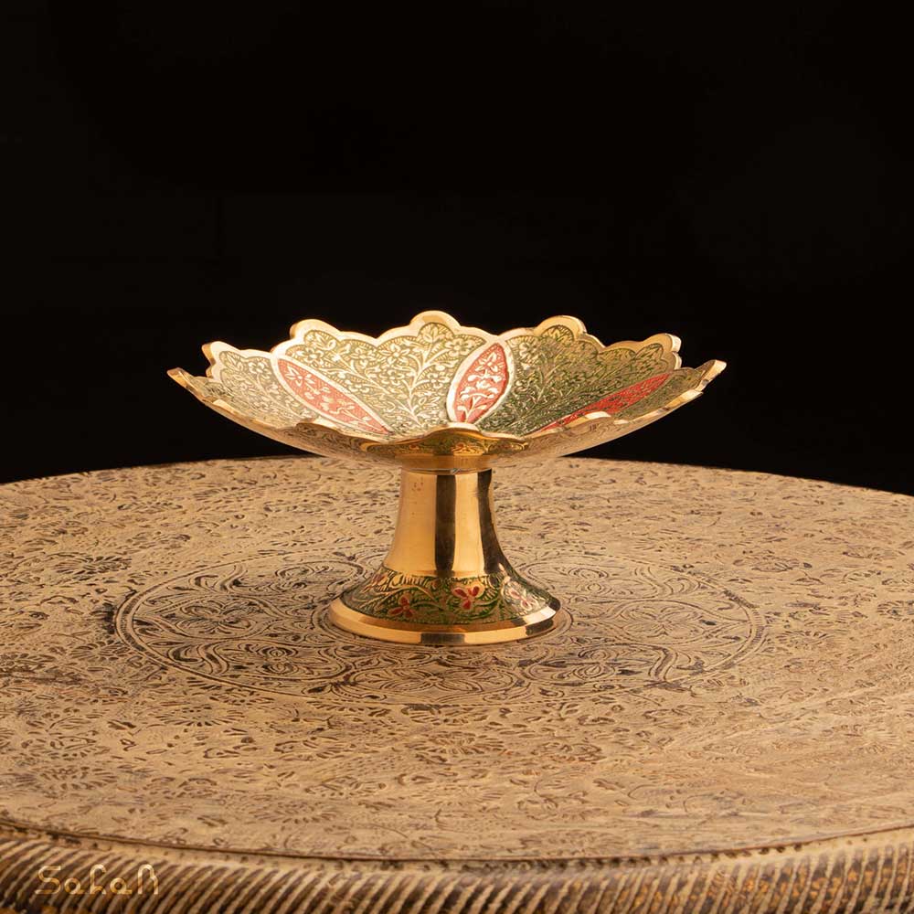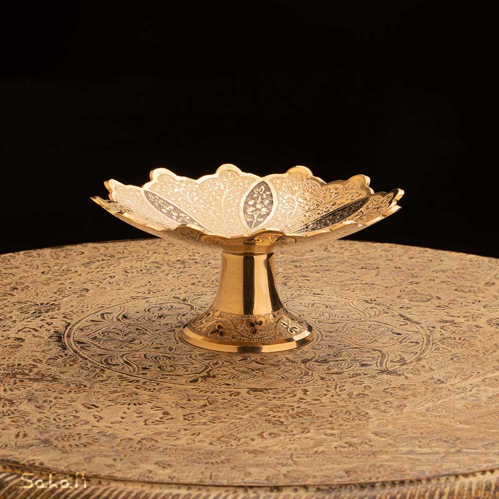 خانه فروشگاه ظروف برنجی هندی شیرینی خوری خرماخوری خرماخوری یا شیرینی خوری کوچک برنجی میناکاری طرح سولا