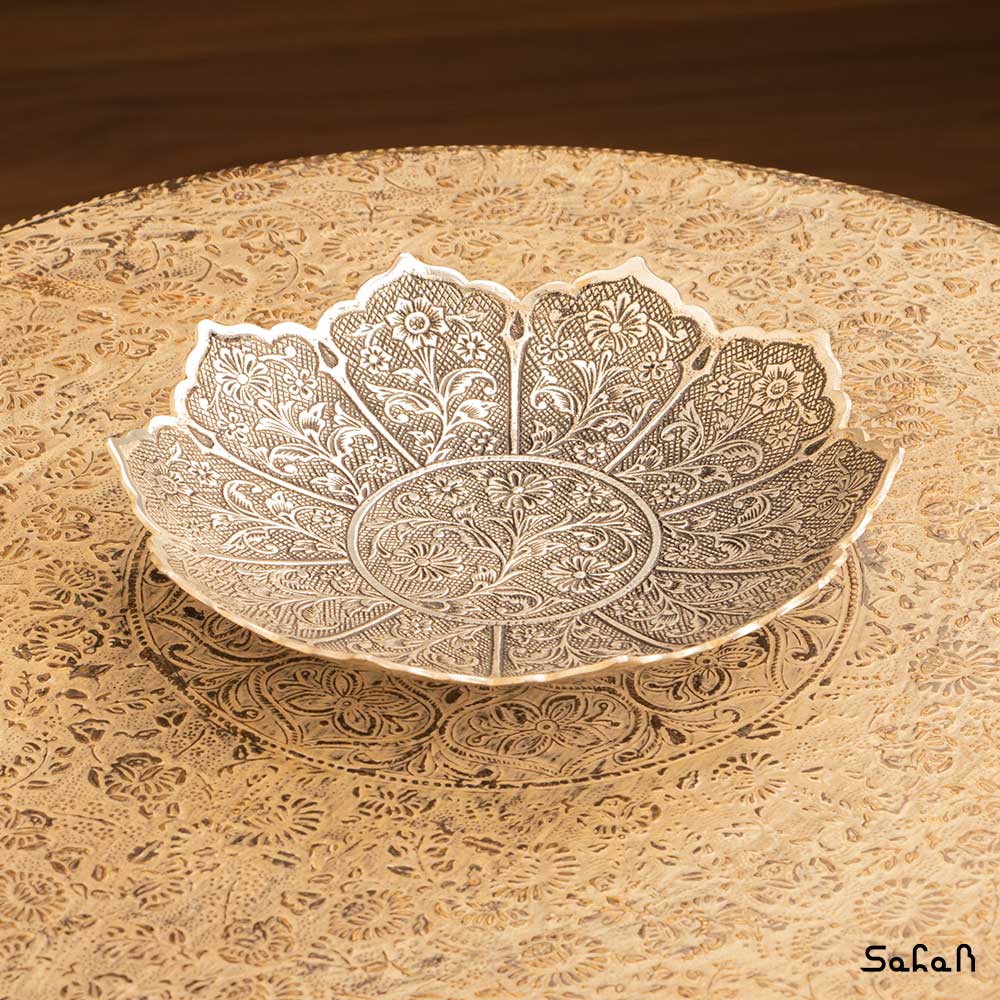 خانه فروشگاه ظروف برنجی هندی شیرینی خوری پیش دستی یا شیرینی خوری نقره ای طرح شجر