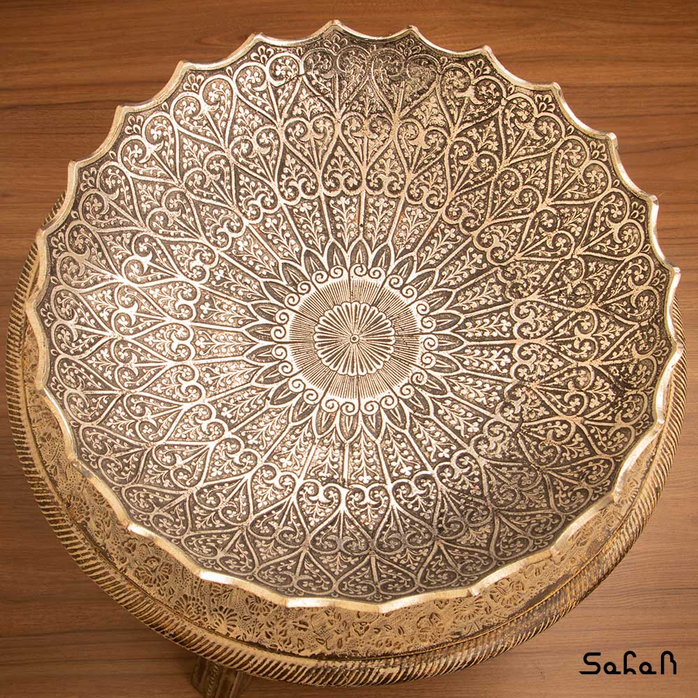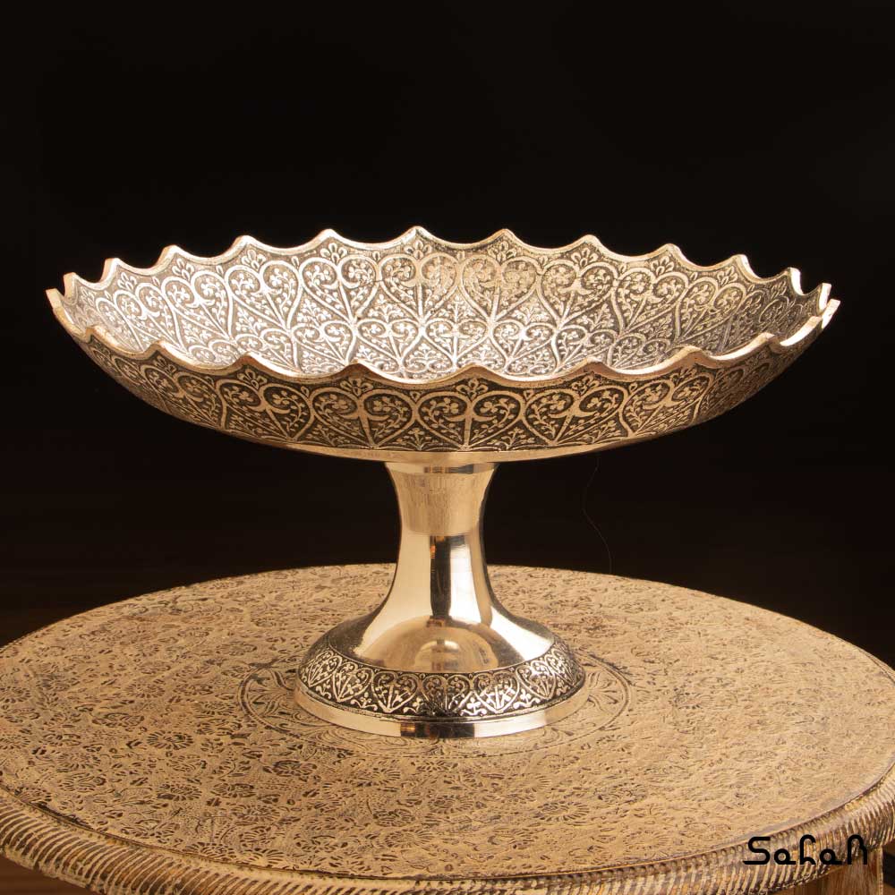 خانه فروشگاه ظروف برنجی هندی میوه خوری برنجی هندی میوه خوری برنجی نقره ای پایه دار دورو طرح قلب