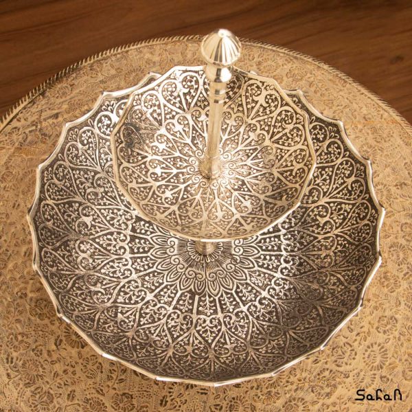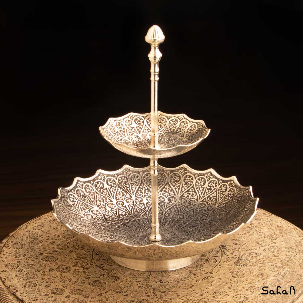 شیرینی خوری برنجی نقره ای دو طبقه طرح قلب