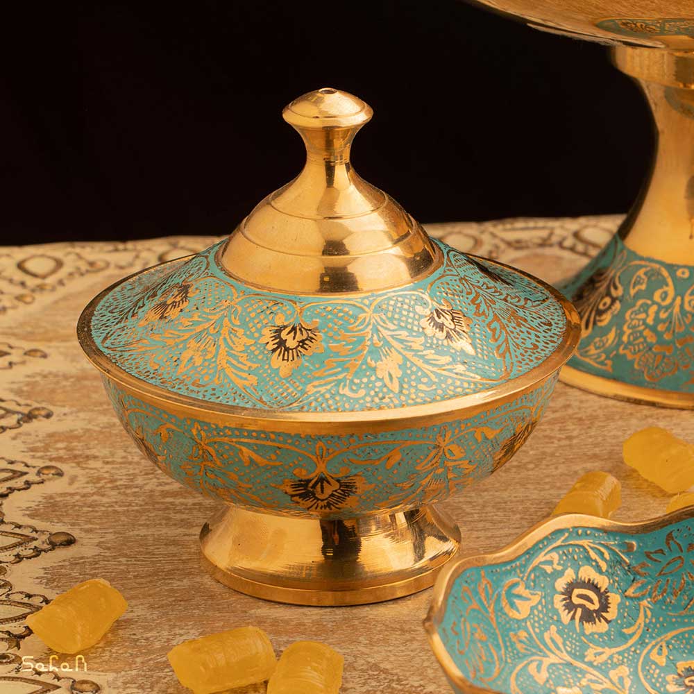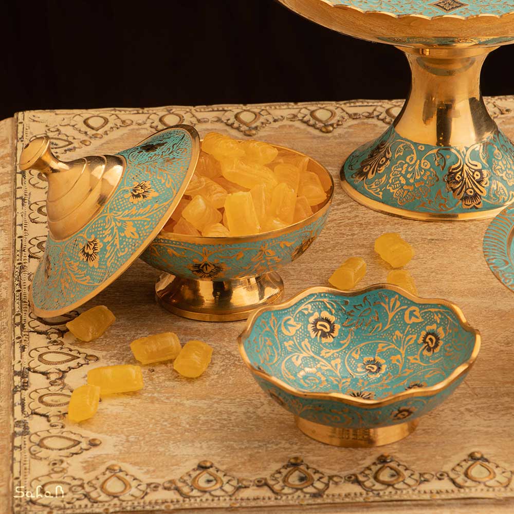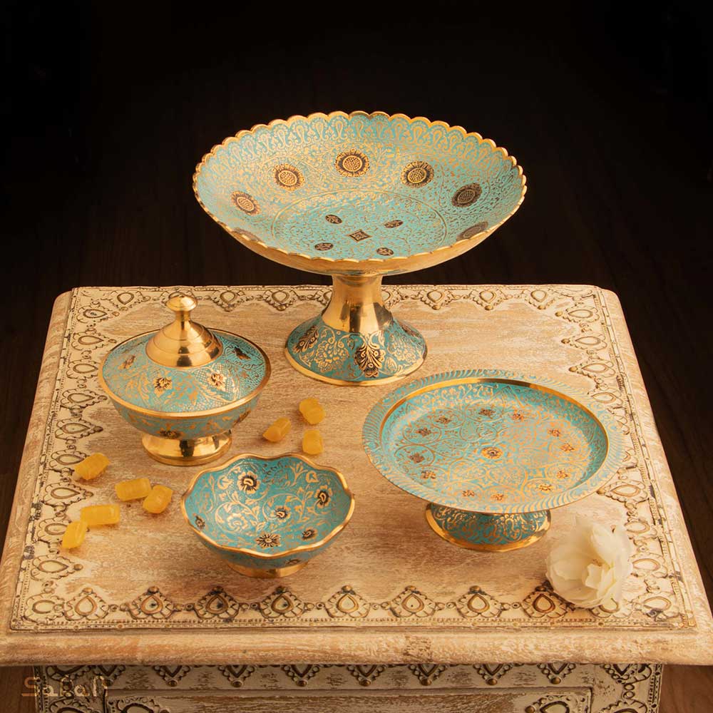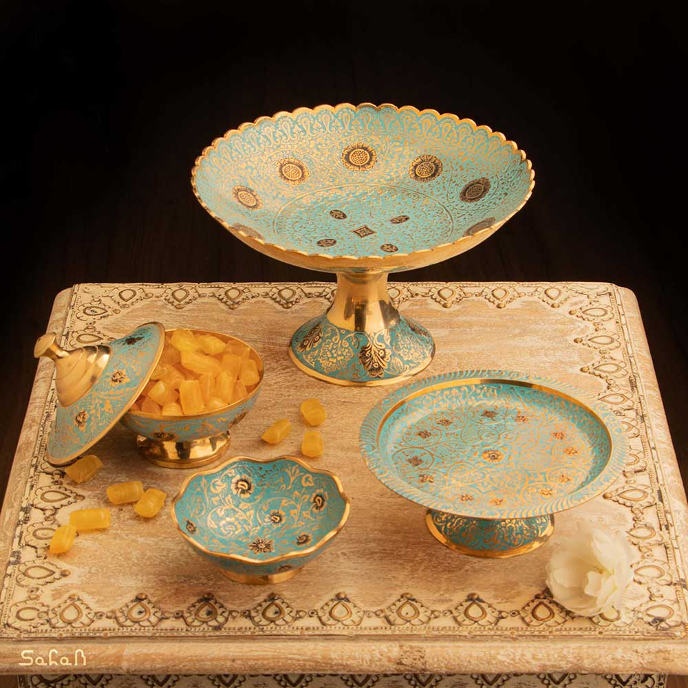 • ست کامل شامل:‌ یک عدد شیرینی خوری – یک عدد قندان – یک عدد خرما خوری – یک عدد کاسه