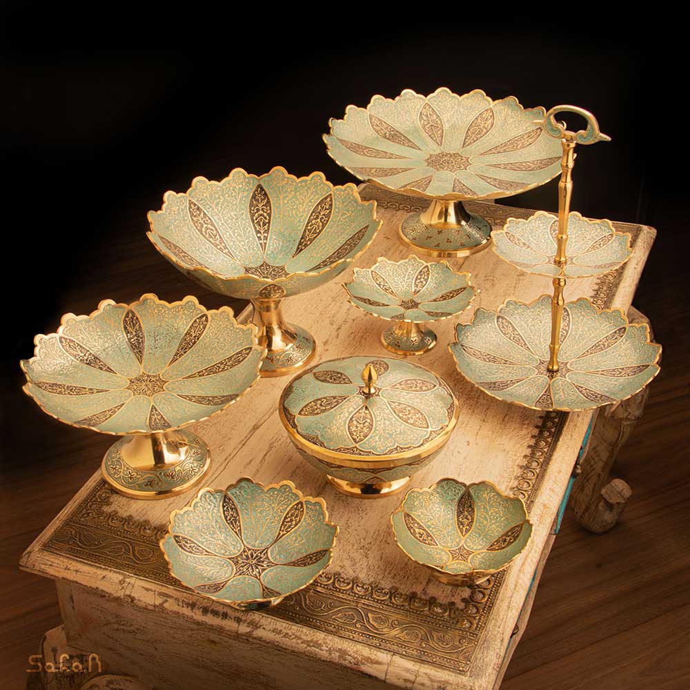 شیرینی خوری برنجی میناکاری پایه دار