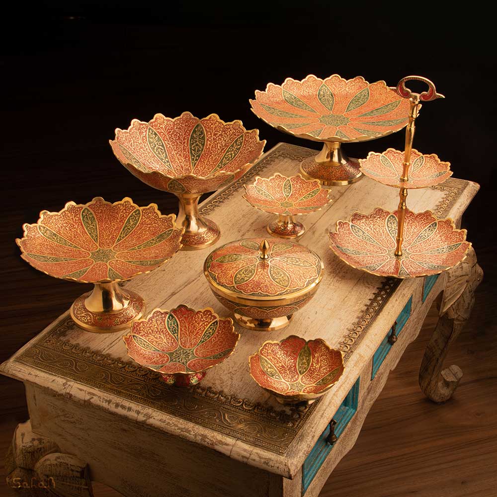 شیرینی خوری برنجی میناکاری پایه دار