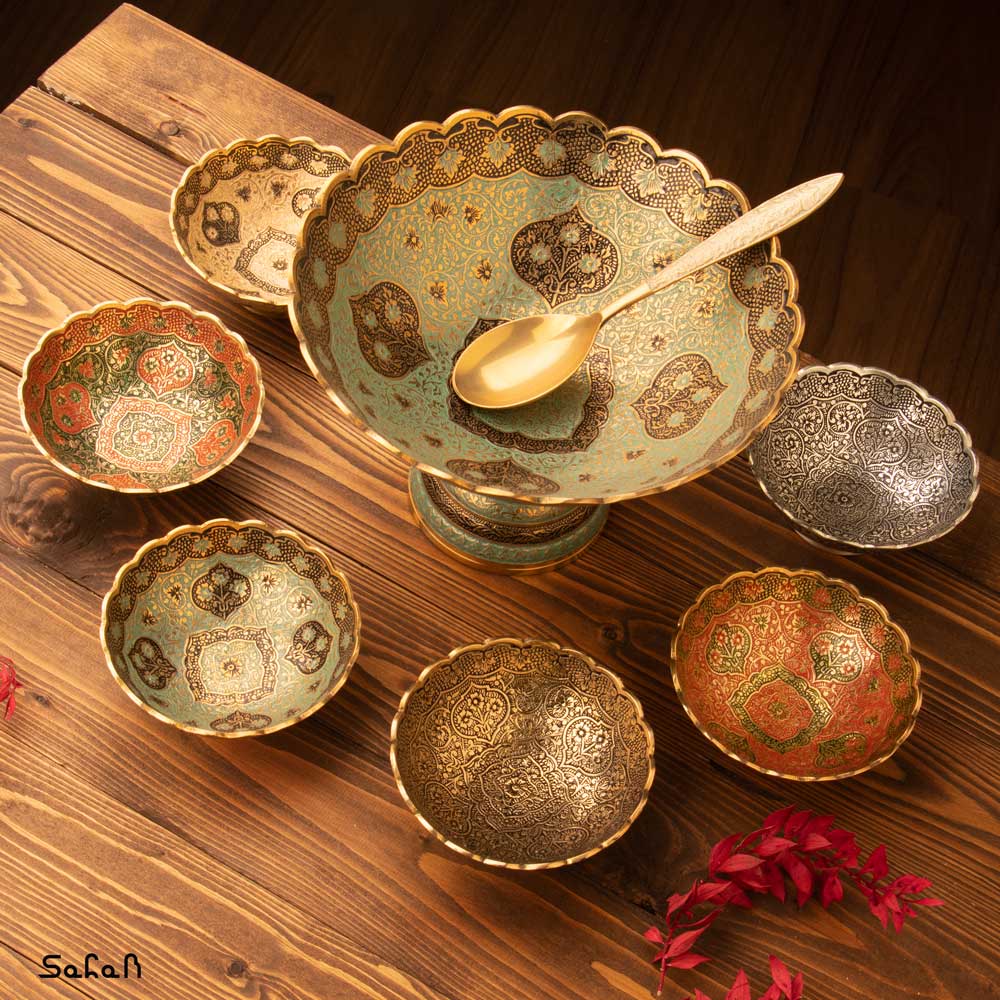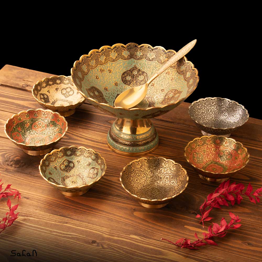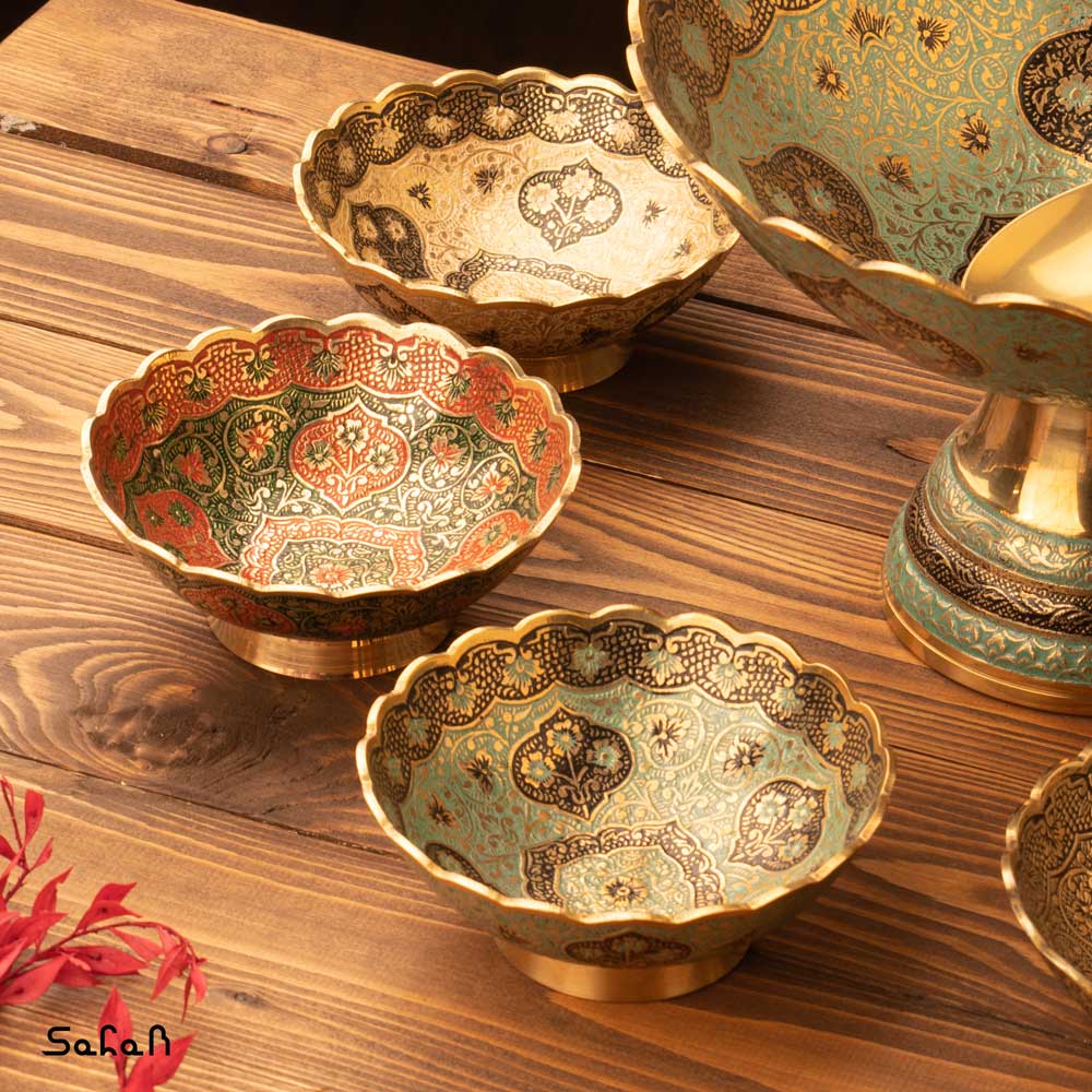 خانه فروشگاه ظروف برنجی هندی ست پذیرایی ست آجیل خوری ست آجیل خوری کد 508