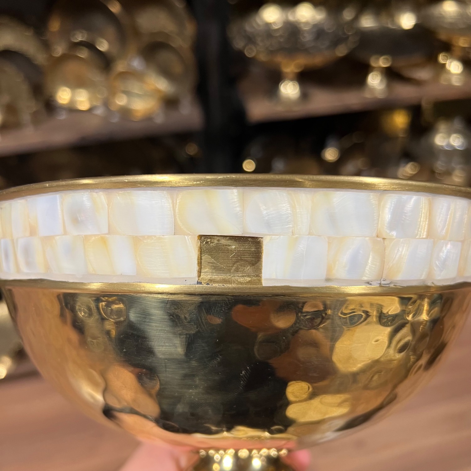 خانه فروشگاه ظروف برنجی هندی میوه خوری برنجی هندی میوه (آجیل) خوری برنج و صدف چکشی
