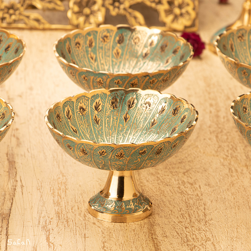 کاسه برنجی میناکاری پایه دار دورو