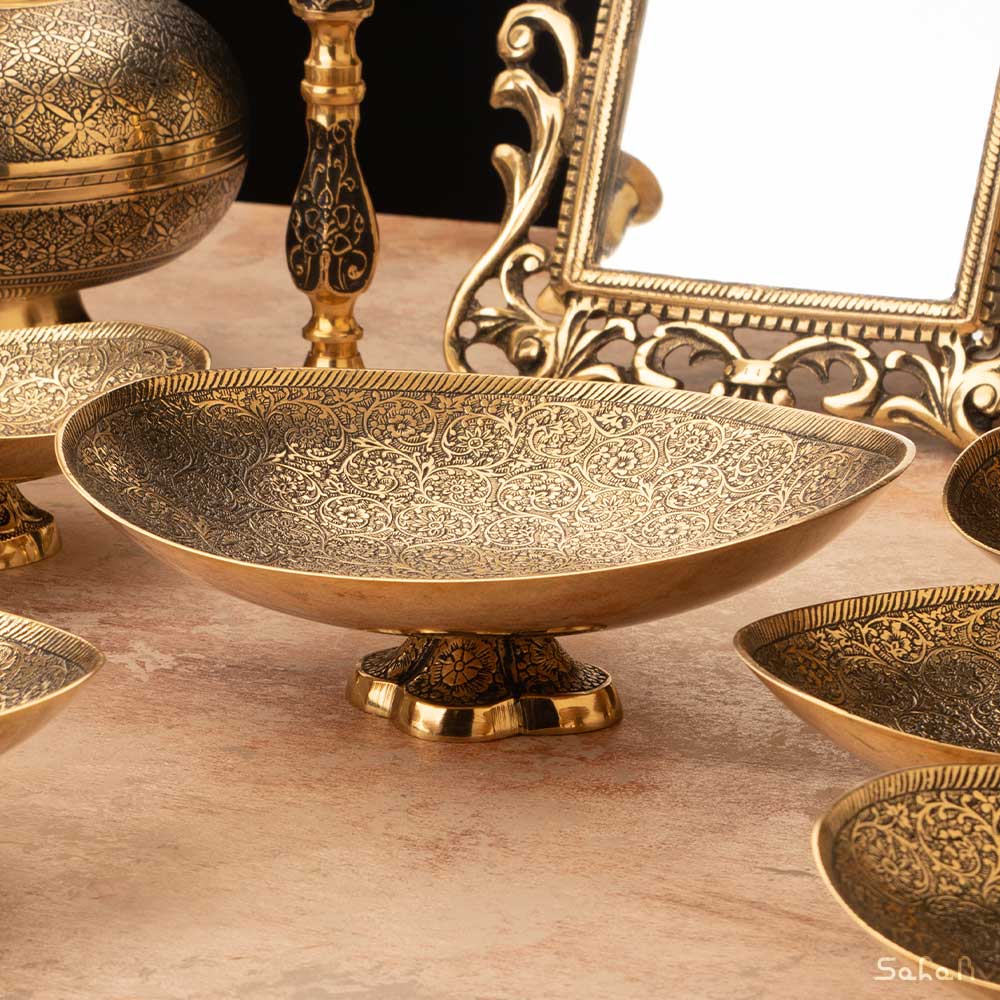 شیرینی خوری برنجی آنتیک پایه دار
