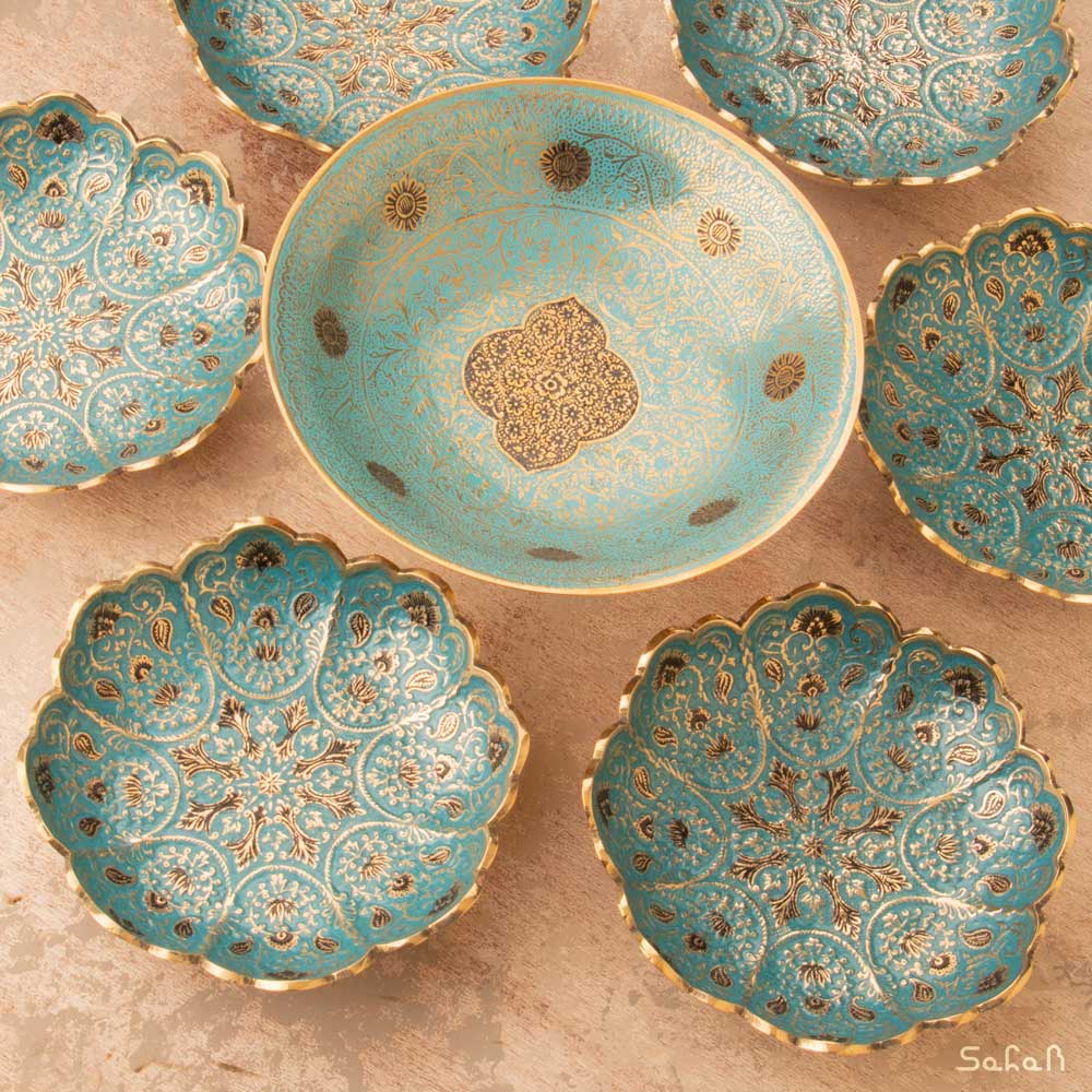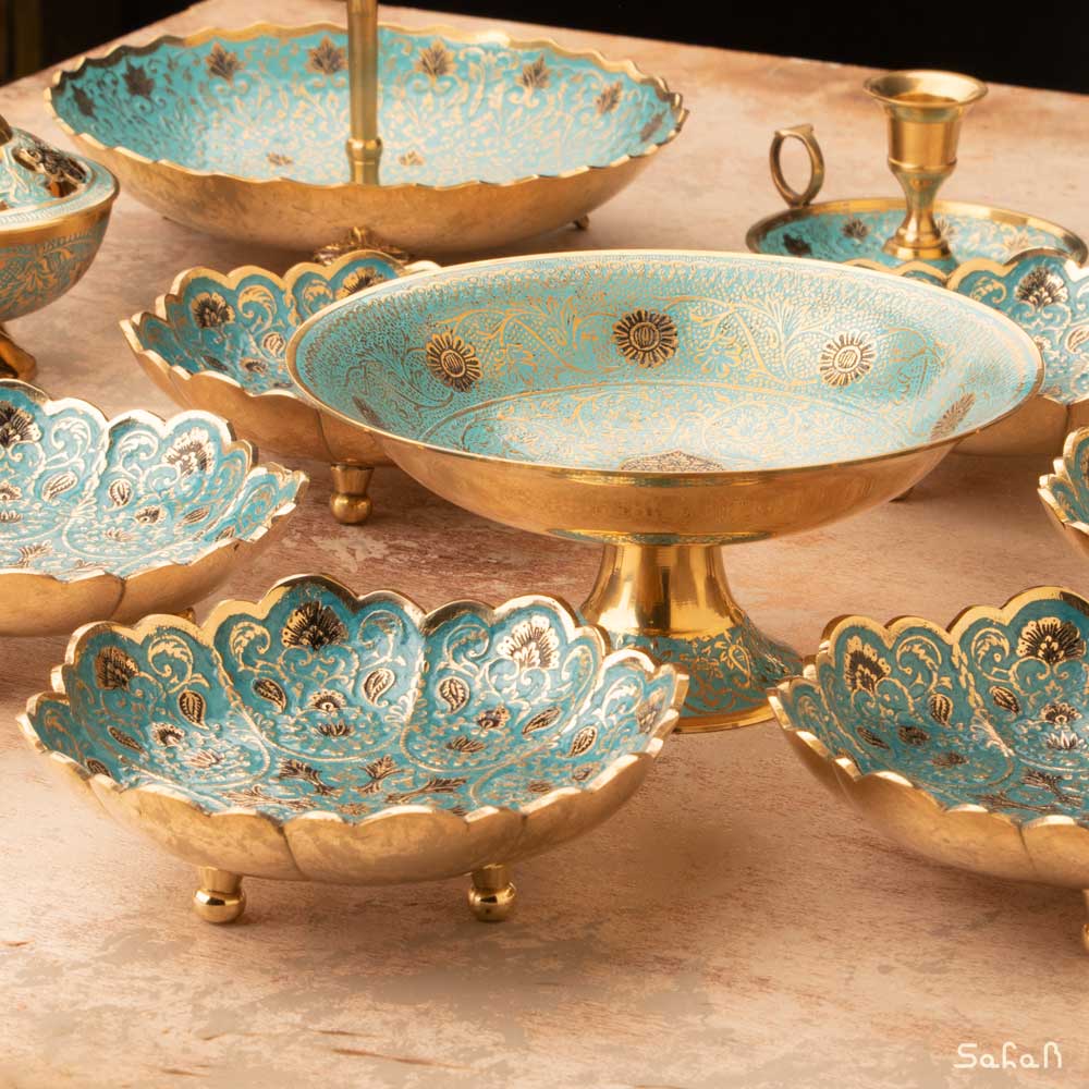 شیرینی خوری پایه دار برنجی میناکاری