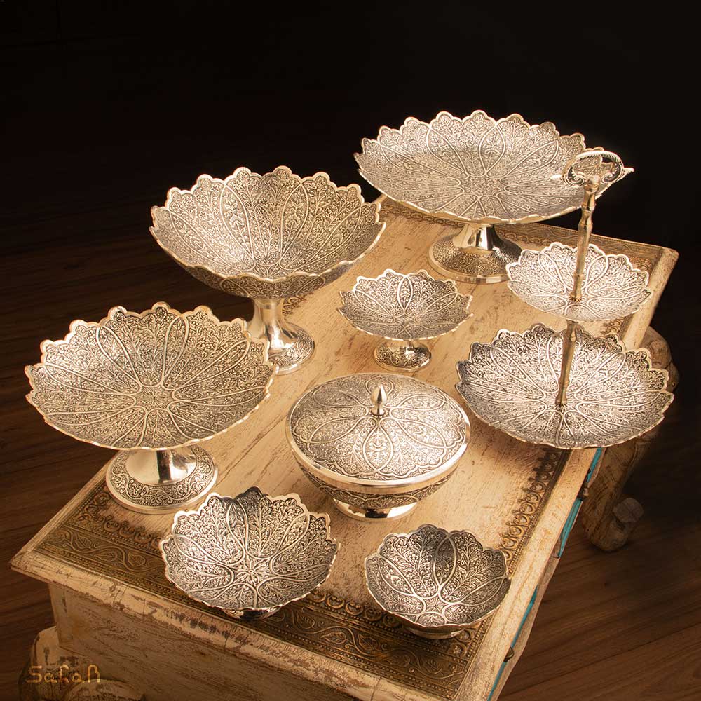 ست کامل 8 پارچه برنجی طرح سولا رنگ نقره ای کد 478